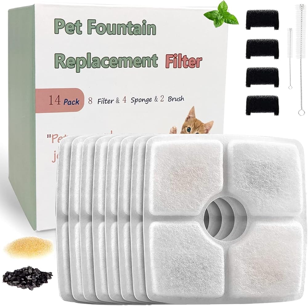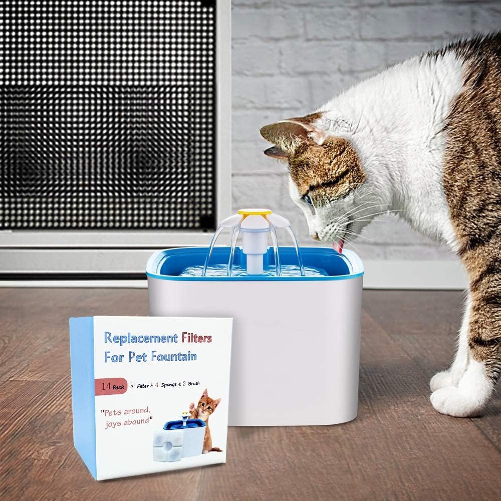 فلتر نافورة بديل للقطط 8 قطع لنافورة فيكين ونافورة متطابقة، 8 فلتر 2 فرشاة 4 اسفنجات متضمنة