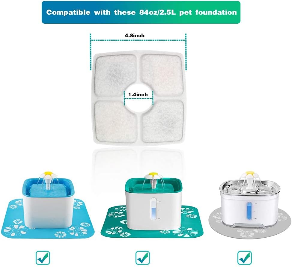 • 🐾【تطابق وملاءمة مثاليين!】تم تصميم فلتر نافورة مياه القطط الخاص بنا متوافق مع نافورة مياه القطط فيكين ووندر كريتشر وكومسمارت بسعة 84 اونصة/2.5 لتر والنوافير الأخرى بنفس الحجم والأناقة. حجم الفلتر: القطر بالكامل 4.9 انش وقطر المركز 1.35 انش.
