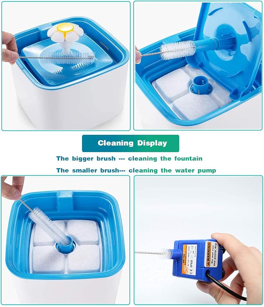 ②يوصى أيضًا بتنظيف النافورة، حيث يمكن أن تساعد الفرشاة على التنظيف بشكل أفضل وأسهل. ③ يوصى باستبدال الفلتر كل أسبوع إلى أسبوعين.
