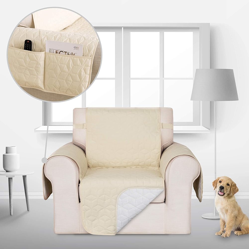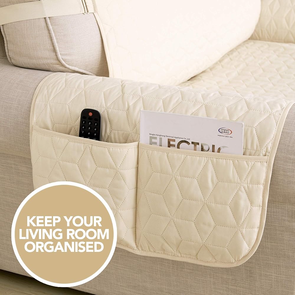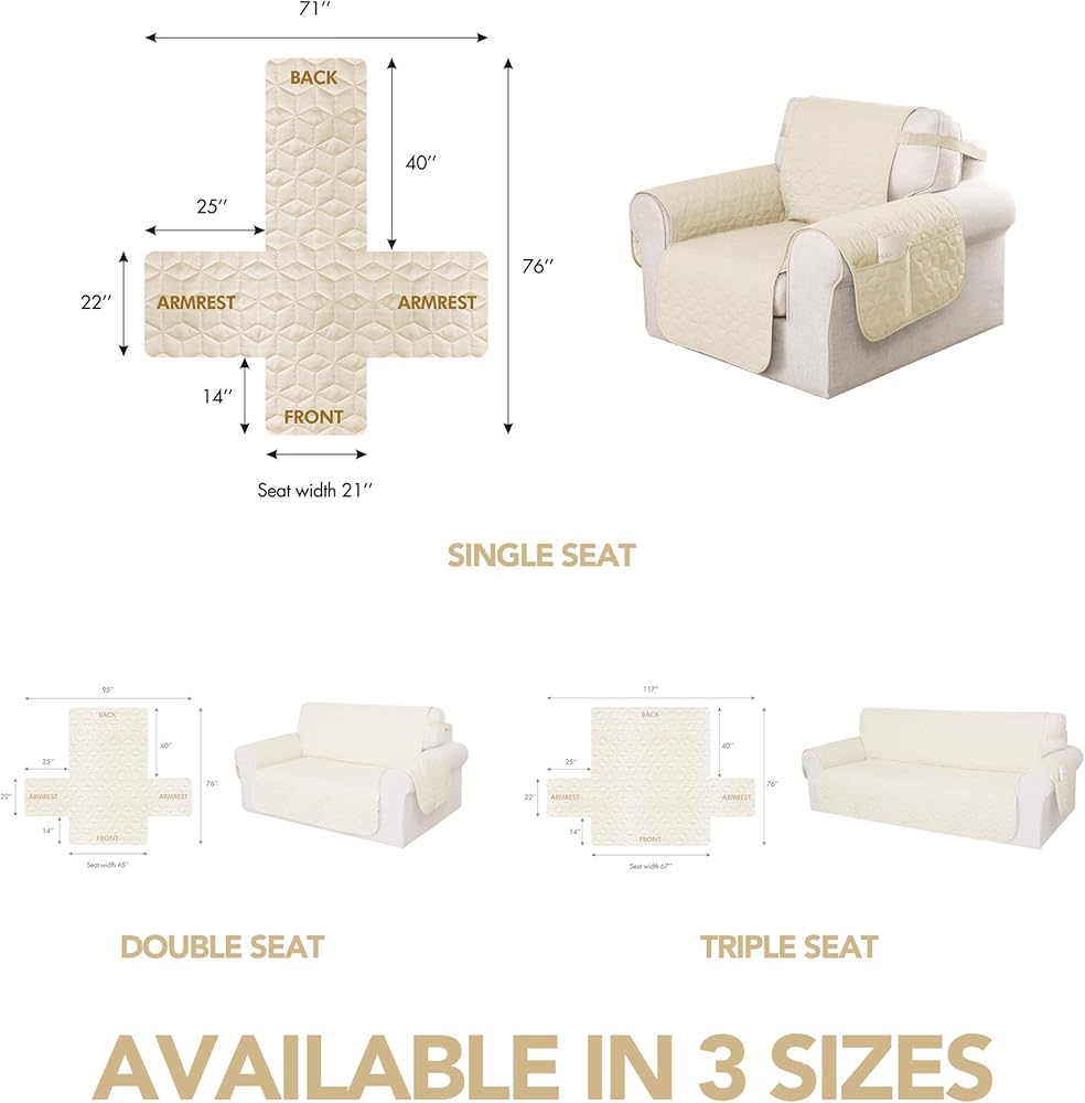 نمط هندسي مع جيوب جانبية: يتميز غطاء الأثاث المبطن بنمط معين أنيق ومخيط بشكل مثالي، فهو يكبر ويضيف الأناقة إلى ديكور منزلك. يتميز غطاء الأريكة المريح بجيوب تخزين واسعة على طرفي الذراعين. يأتي واقي الأثاث أيضًا مزودًا بحزام و4 أشرطة إسفنجية تساعد في تثبيته.