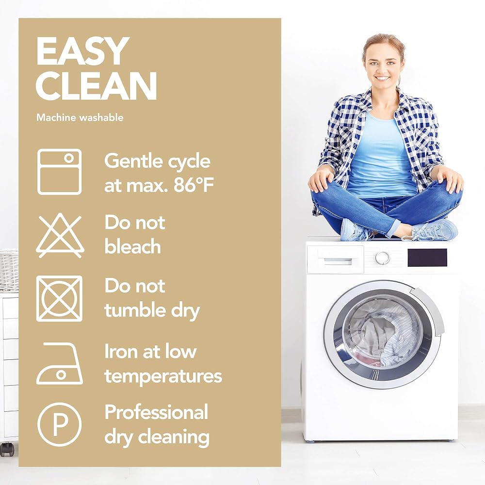 تعليمات العناية: واقي الأثاث سهل التنظيف. يمكن غسله في الغسالة عند درجة حرارة 86 فهرنهايت وعلى دورة خفيفة. يُكوى على إعدادات درجة حرارة منخفضة، ويُعلق ليجف، ويُجفف بالمجفف.