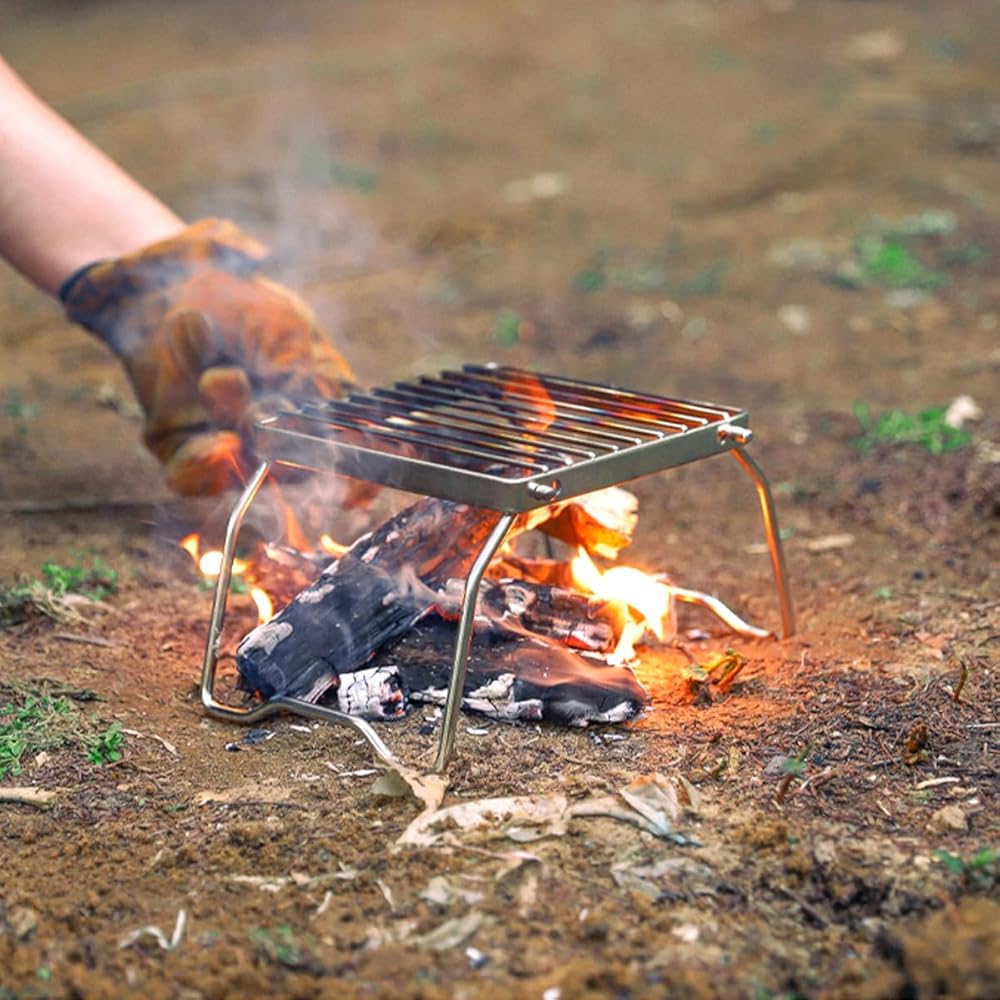 نوزاماس رف شواء للتخييم من الستانلس ستيل قابل للطي، حامل موقد شواء خفيف الوزن، شبكة شواء محمولة للتخييم والمشي لمسافات طويلة والشواء والصيد