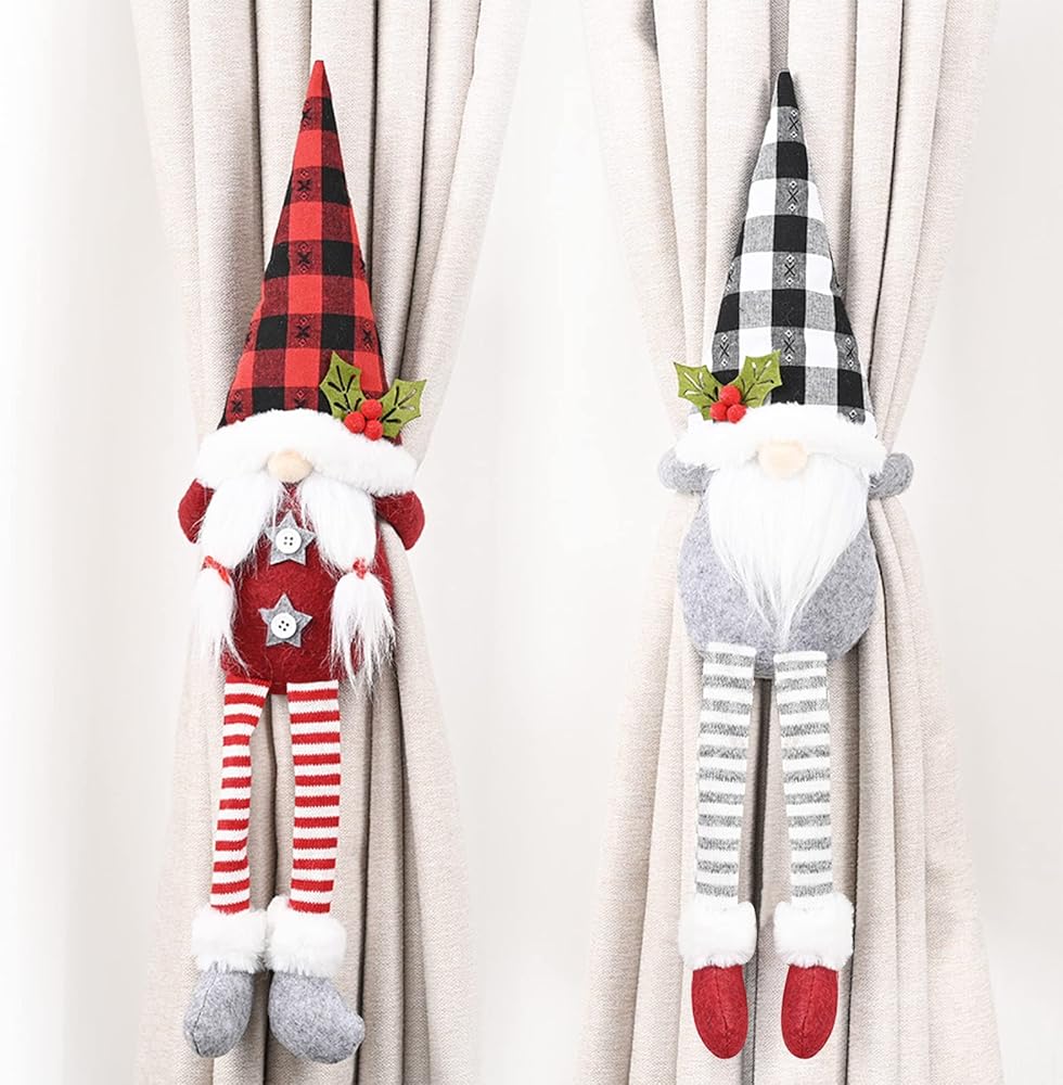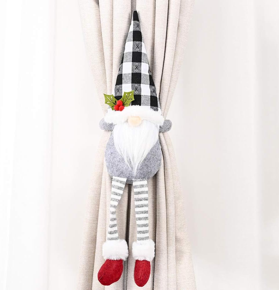❄️❄️مواد عالية الجودة: أربطة ستائر مستر اند مسز جنوم مصنوعة من قماش محبوك وفلانيل وخيش وفرو صناعي، ناعمة وخفيفة الوزن، ليس من السهل أن تتوبر أو تسقط.