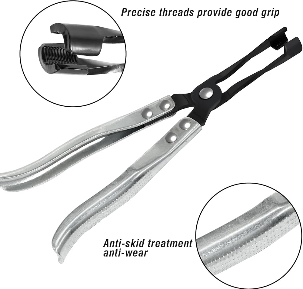 تحتوي الكماشة على أطراف مسننة وأداة إزالة عمود الكامات تمسك الختم بإحكام. يصل تصميم الرقبة الطويلة إلى المناطق الضيقة من السدادة ويمسك السدادة للإزالة