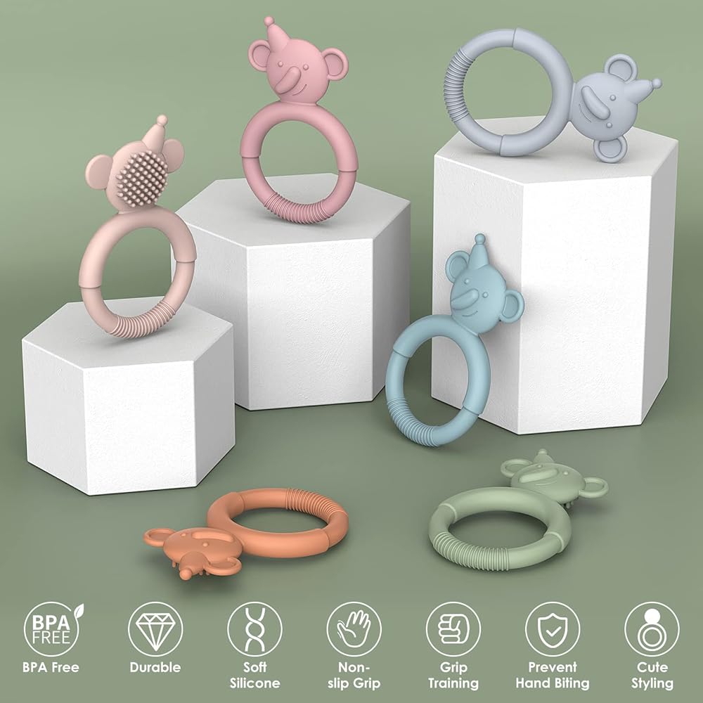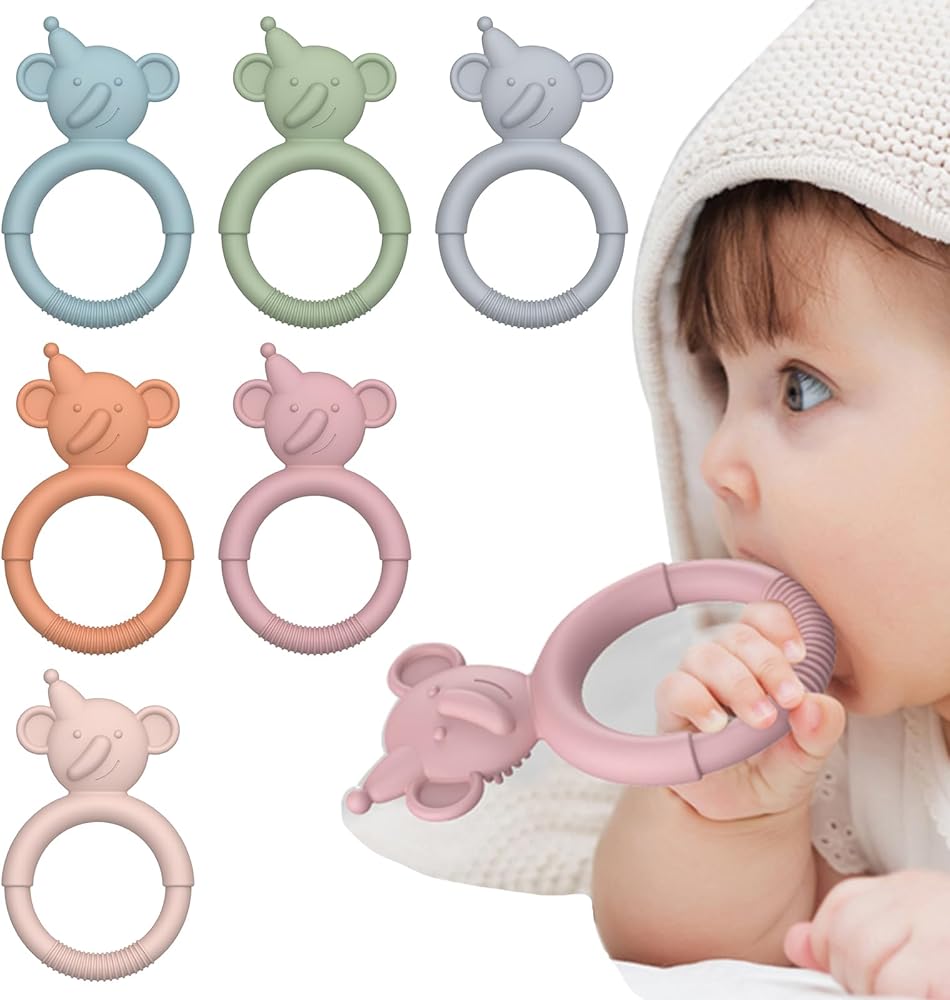 🍒 عبوة قيمة واختيار هدية رائعة للطفل: ستحصل على ستة ألعاب تسنين مختلفة من السيليكون للأطفال، مناسبة للرضع من سن 3 أشهر فما فوق. [تتميز كل واحدة بطول 11.43 سم وعرض 6.35 سم للرأس] مما يجعلها قيمة رائعة للآباء الذين يرغبون في تخزين أدوات التغذية. تأتي الألعاب بألوان زاهية وممتعة ستجذب حواس طفلك وتجعل وقت اللعب أكثر متعة.