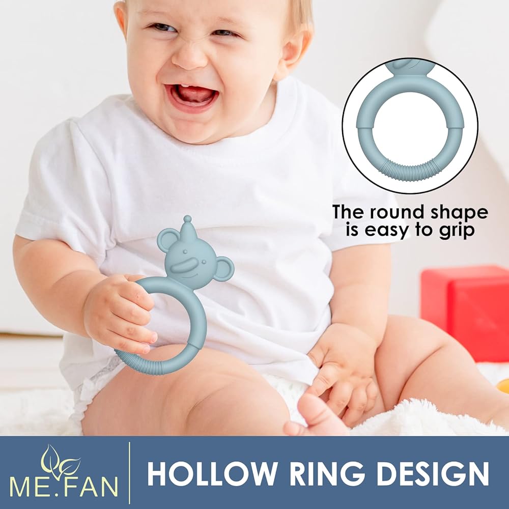 🍒 ألعاب مضغ للأطفال بتصميم حلقة مجوفة: الحلقة مقسمة إلى جزأين، النصف العلوي ناعم ومناسب للأطفال لعضهم، بينما تم تصميم النصف السفلي بحلقات دائرية مرتفعة مناسبة للإمساك ويمكن أن تساعد في التدريب على الإمساك. مهارات.
