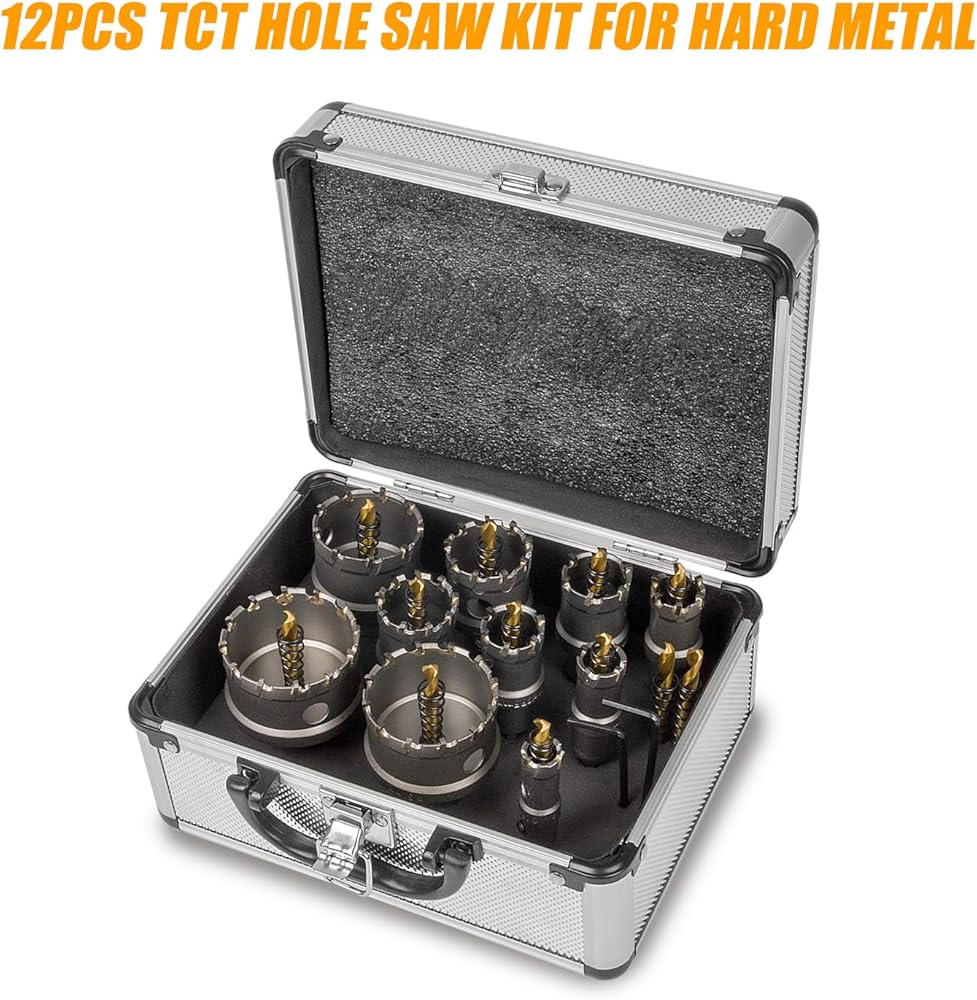 رانسوتو مجموعة منشار ثقب من 12 قطعة، 5/8 انش - 2-1/8 انش مجموعة قطع ثقوب تي سي تي مع كربيد التنجستن للمعادن الصلبة والستانلس ستيل والحديد والخشب والبلاستيك