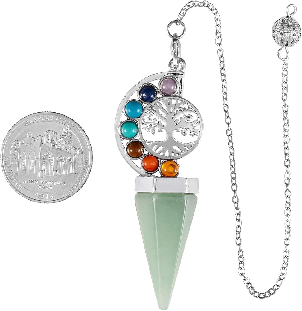 SUNYIK 7 شقرا شجرة الحياة كريستال البندول المدبب، البندول الحجري الكريستالي المعالج فعليًا للتغطيس والعرافة، أفينتورين أخضر