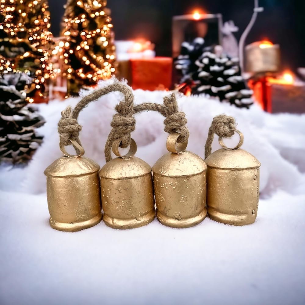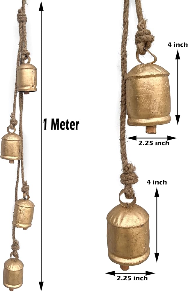 • مجموعة من 4 أجراس بقرة: الأبعاد - طول 1 متر، 2.4 × 2.4 × 4 بوصات