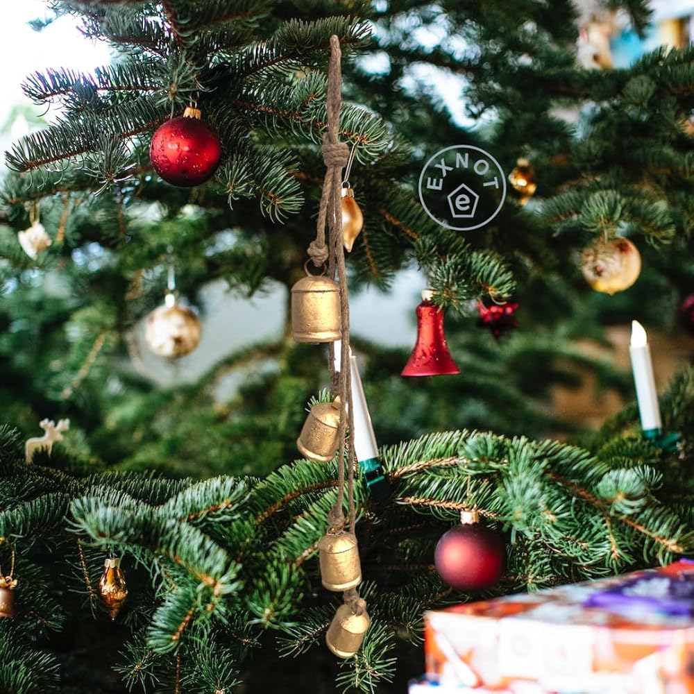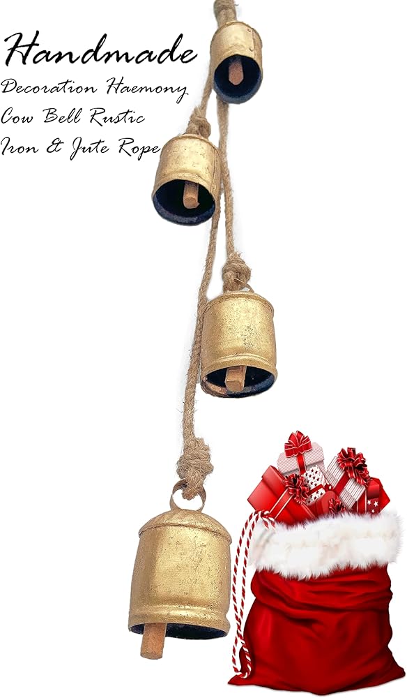 أجراس EXNOT Shabby Chic أجراس ريفية معلقة لتزيين شجرة عيد الميلاد - جرس بقرة معلق مصنوع يدويًا من الحديد الريفي لديكور المنزل - جرس بقرة على طراز عتيق بطول 1 متر للحديقة والمنزل