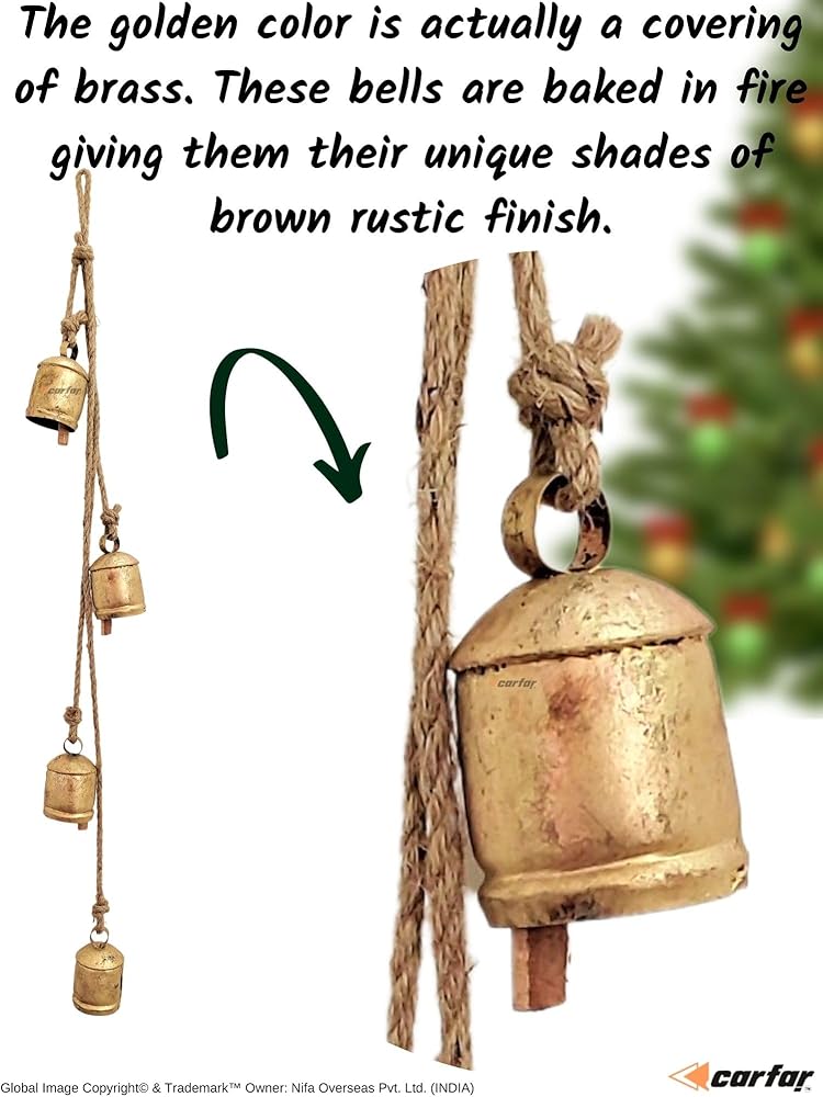 • 🔔 The golden color is actually a covering of brass. These bells are baked in fire giving them their unique shades of brown rustic color.