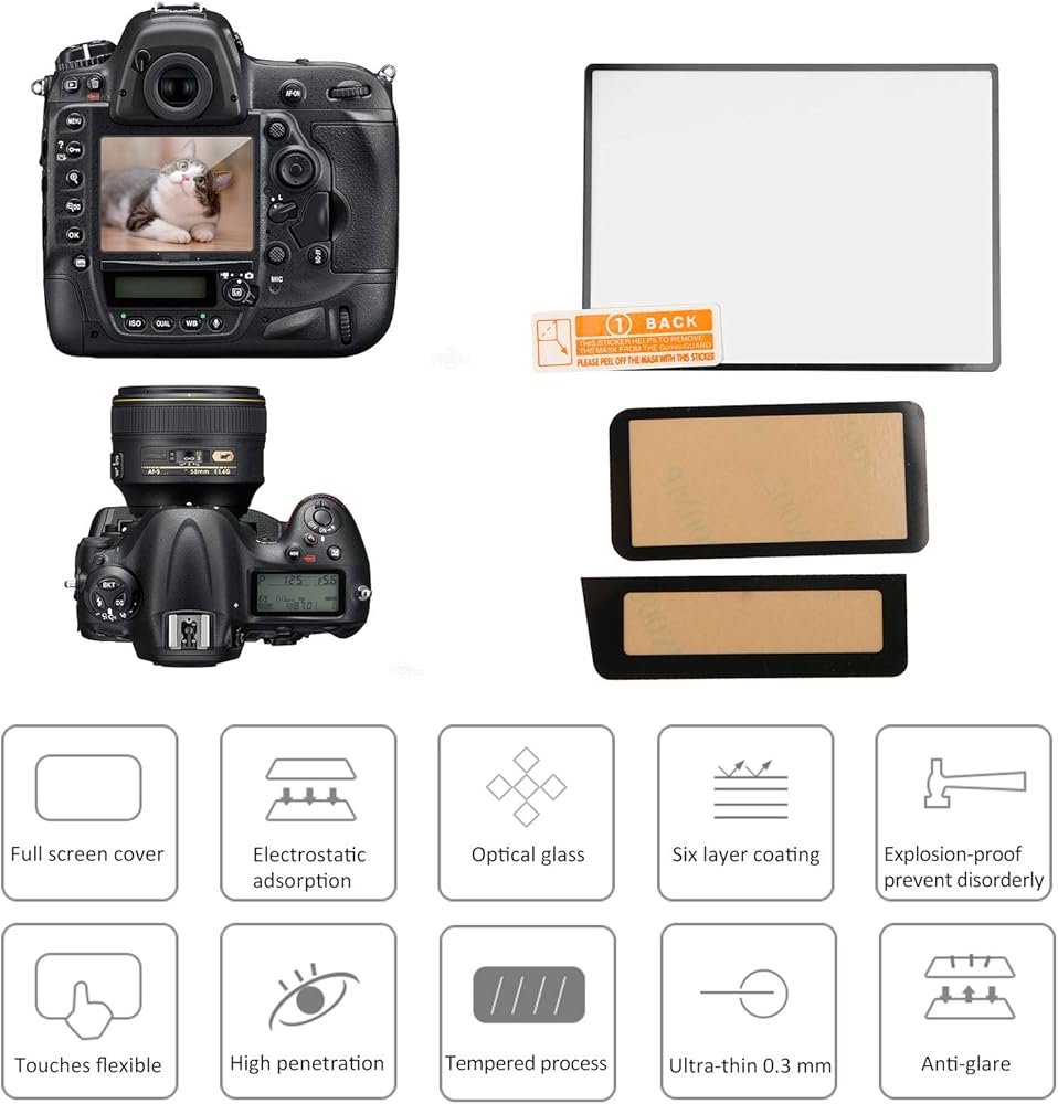 With antidazzle light border design, no dazzle light and bubbles at the edges, high definition and high transparency, suitable for NIKON D4/D4S.