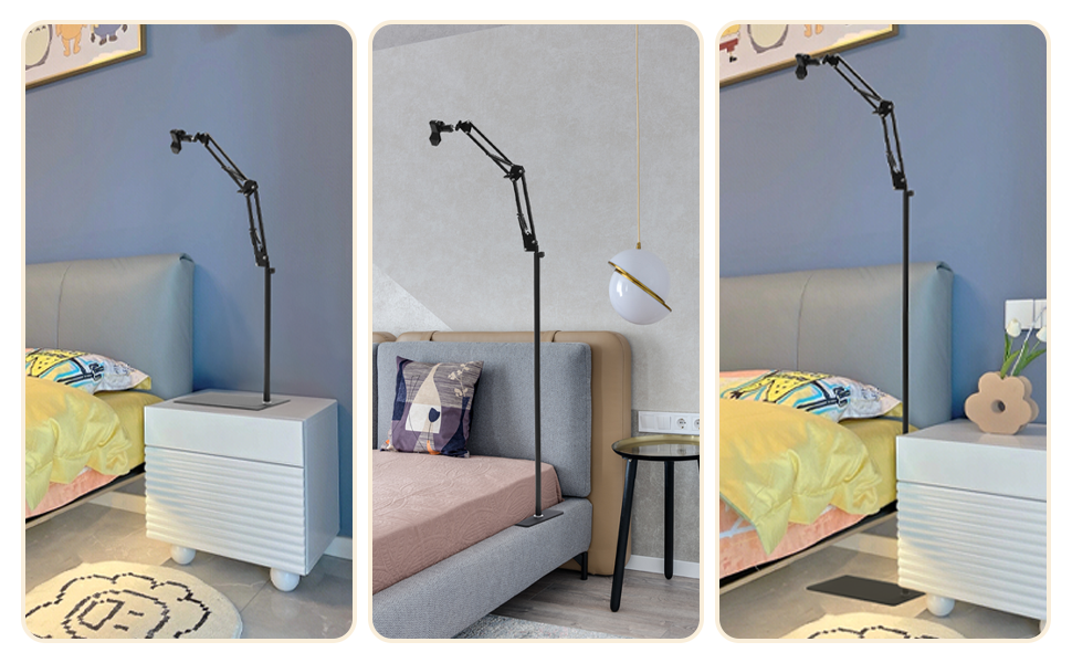 Save space: The entire base plate is only 0.2 inches thick, so you can insert our base plate under your bed or nightstand without taking up extra space. Of course, you can also use two poles and then tuck the bottom plate between the mattress and the bed frame.