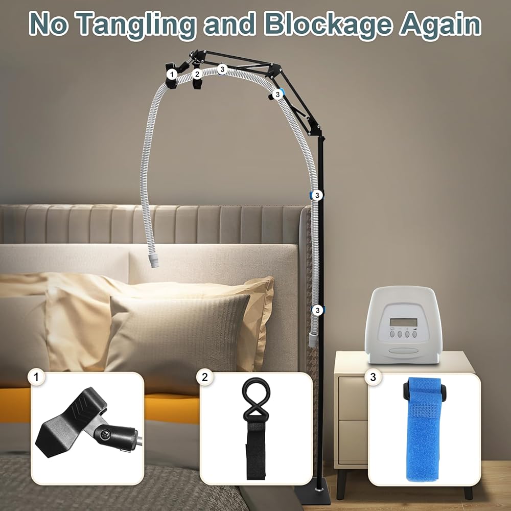 Versatile CPAP Accessories: This adjustable CPAP hose holder provides a practical solution for securely holding your breathing tube and mask during sleep apnea therapy sessions.