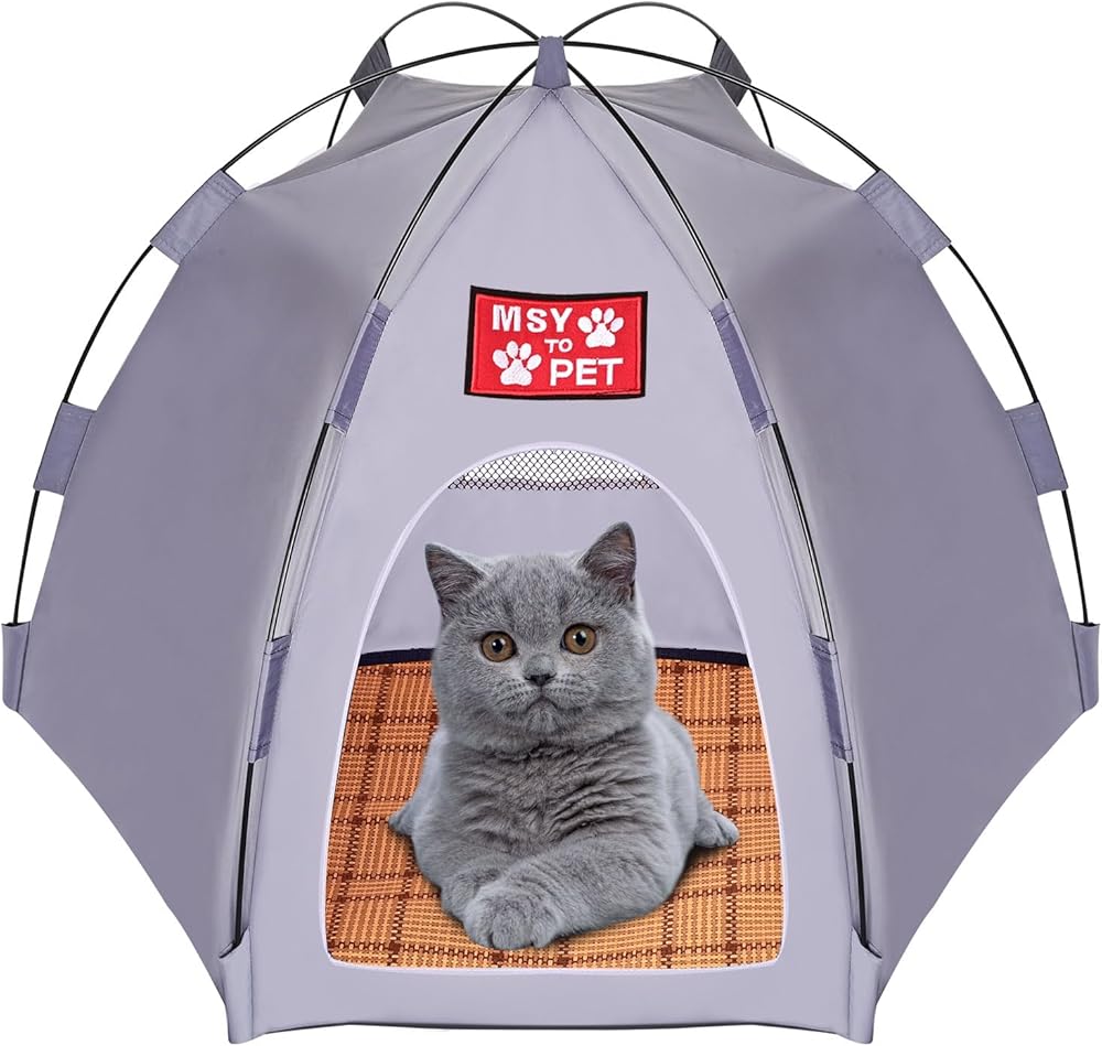 خيمة قطط كبيرة محمولة للاستخدام الخارجي من اندور بلون رمادي