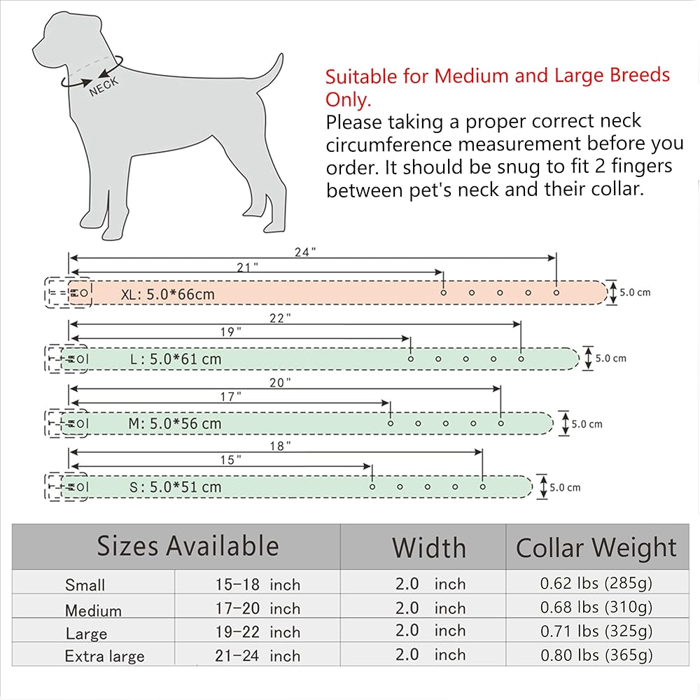 【يناسب الكلاب المتوسطة والكبيرة فقط】 - يرجى أخذ قياس محيط الرقبة الصحيح قبل الطلب. اجعلها كما في التعليمات كما تقول الصورة. إذا لم تكن متأكدًا، يمكنك الاتصال بنا وسنقدم لك الرد الاحترافي وفي الوقت المناسب.