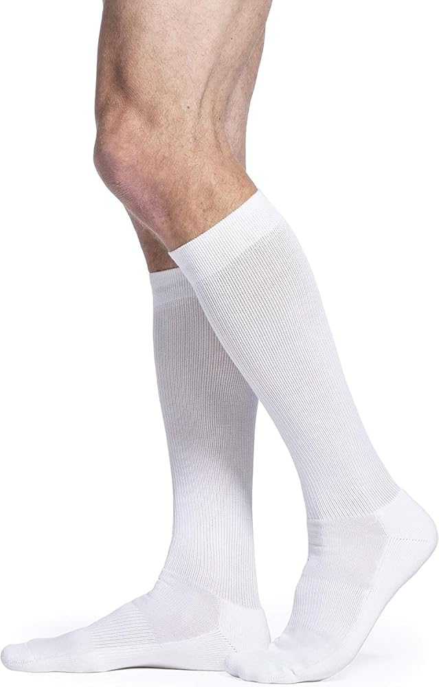Soft, Protective Sole Sigvaris 360 Series with extra-padded sole, heel and toe to absorb impact and protects feet during prolonged periods of standing or walking. Comfort Thick padded sole for extra foot protection. Soft, knit in top band with high stretchability to prevent pinching. Knit with 100% cotton on the inside for people with skin allergies or sensitive skin. Precise Fit Sizing TM The PFS system provides a custom-like fit, superior comfort, and application of accurate compression levels, resulting in patient compliance and medical effectiveness.