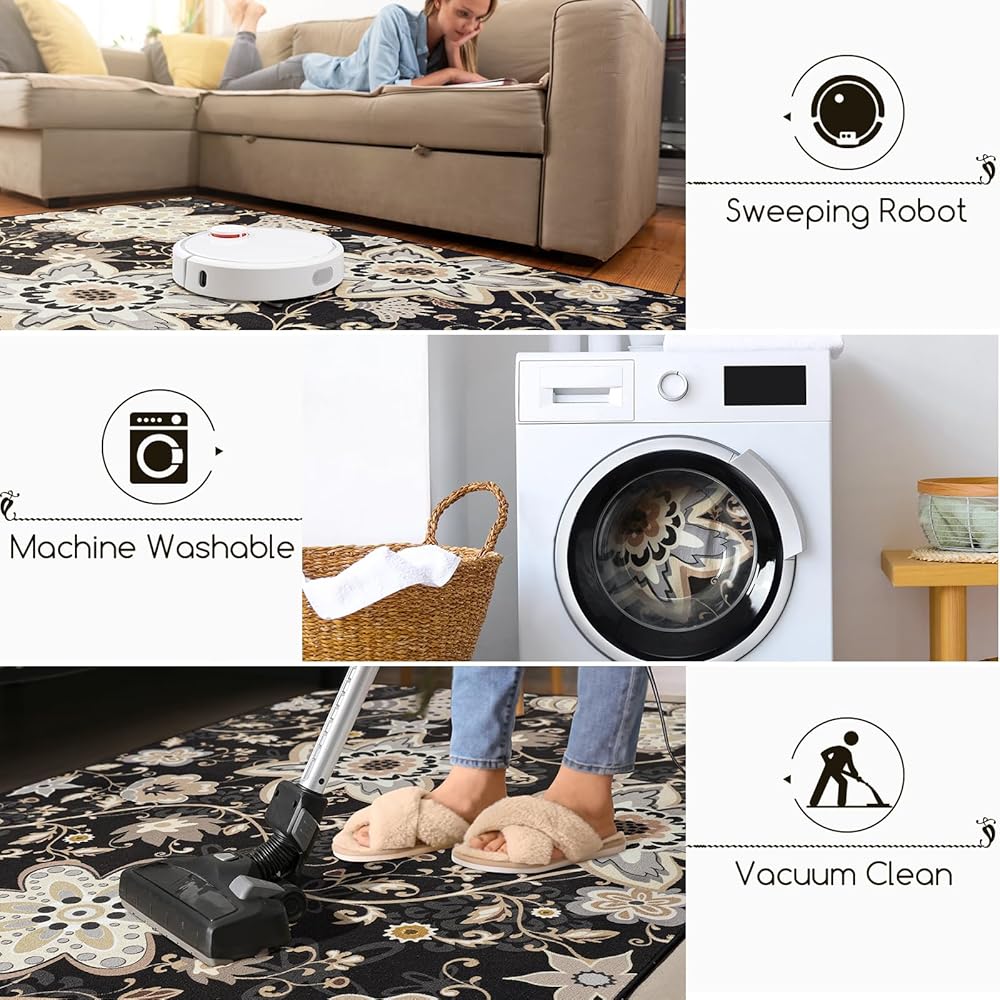 سجادة منطقة قابلة للغسل: السجاد القابل للغسل مصنوع من قماش شانيل قوي وعالي الجودة مع دعامة TPE ويمكن غسله في الغسالة أو يمكن تنظيفه يوميًا باستخدام هوفر محمول أو روبوت كاسح.