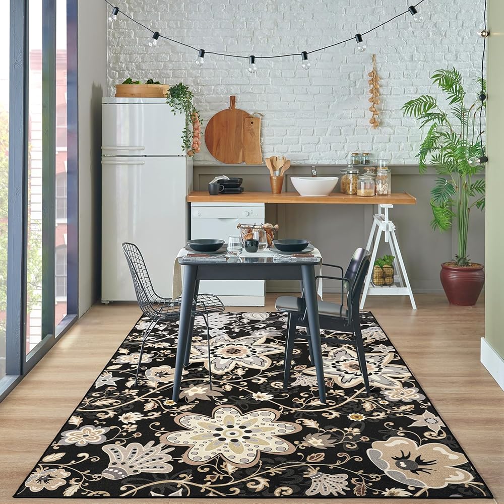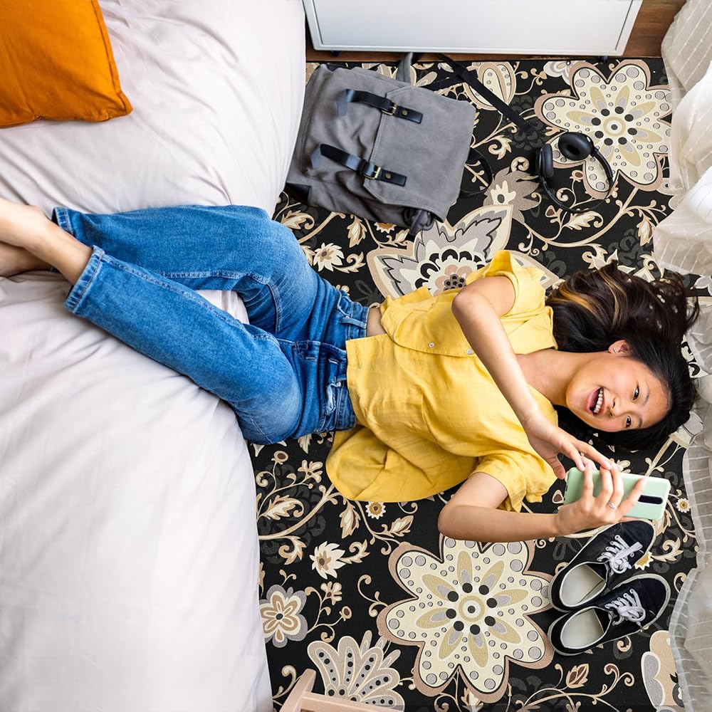 ظهر مانع للانزلاق: سجاد منطقة 5×7 مدعوم بظهر متين من مادة TPE التي تزيد من الاحتكاك بين السجاد والأرضية للحفاظ على سجاد غرفة المعيشة في مكانه، يرجى وضع السجادة على أرضية نظيفة وجافة