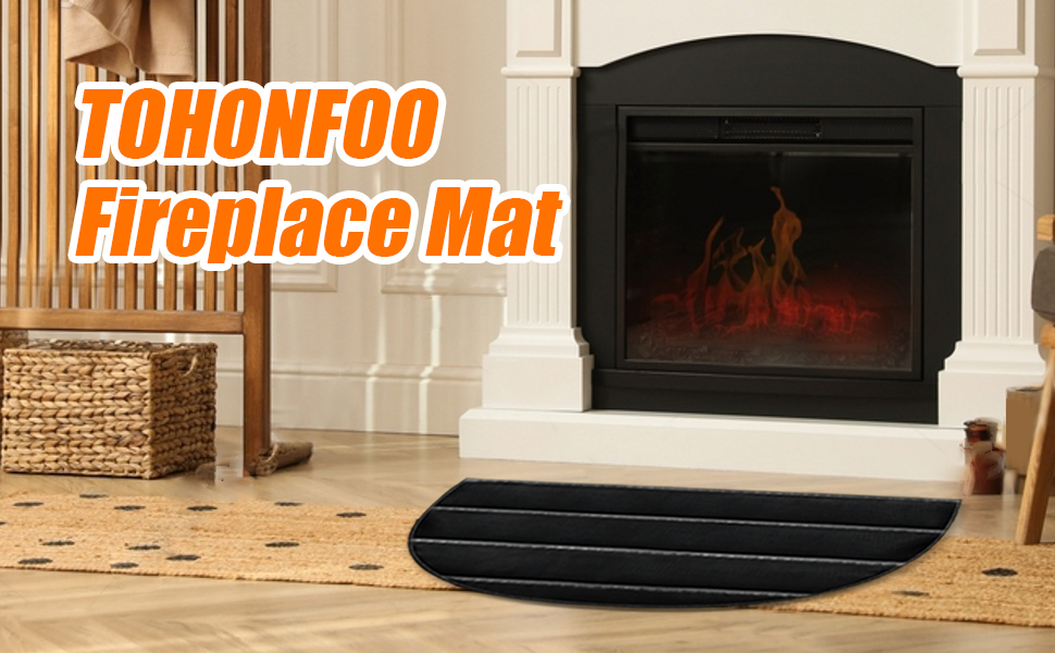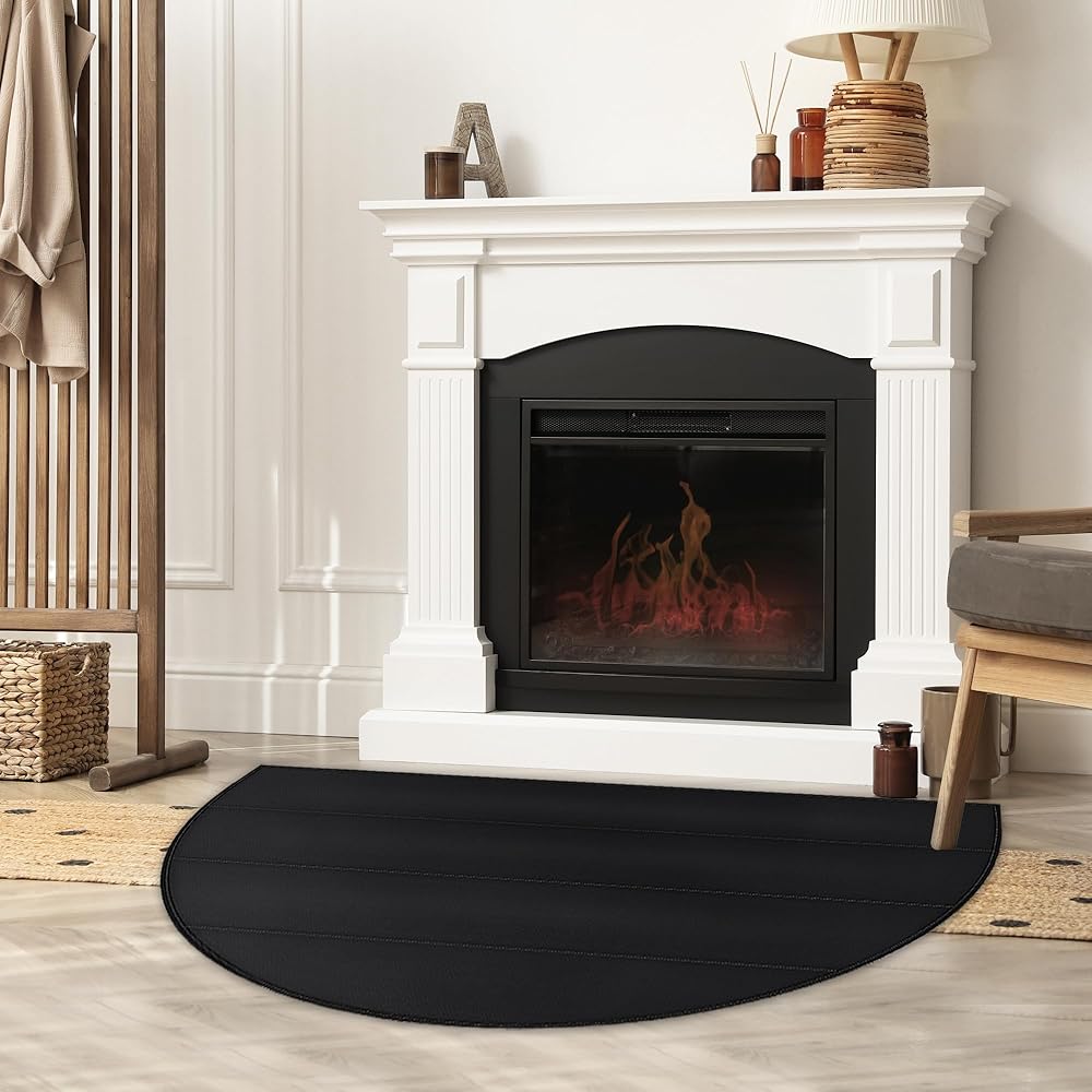 حصيرة مدفأة مقاومة للحريق مقاس 7 مم من TOHONFOO، سجادة نصف دائرية مقاس 24 × 42 بوصة مقاومة للحريق في الأماكن المغلقة تحمي الأرضيات والطوابق والباحات من سباركس إمبرز، أسود