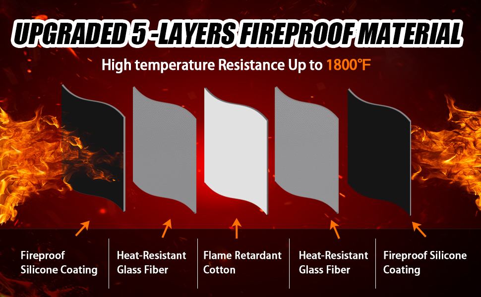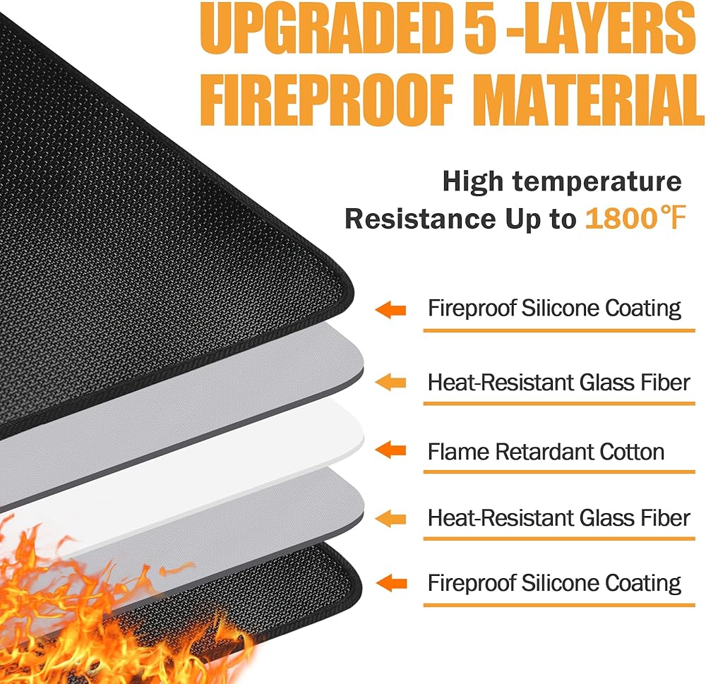 【وسادة مقاومة للحريق مكونة من 5 طبقات】حصيرة الموقد المقاومة للحريق مصنوعة من القطن المقاوم للهب والألياف الزجاجية مع طلاء السيليكون على كلا الجانبين، وخياطة بيضاء ممتازة مقاومة للحريق، والتي يمكنها تحمل درجة حرارة عالية تصل إلى 1800 درجة فهرنهايت على كلا الجانبين، وتحمي أرضياتك أو سجادك من التعرض للحرق أو الاحتراق بسبب شرارة المدفأة أو رمادها.