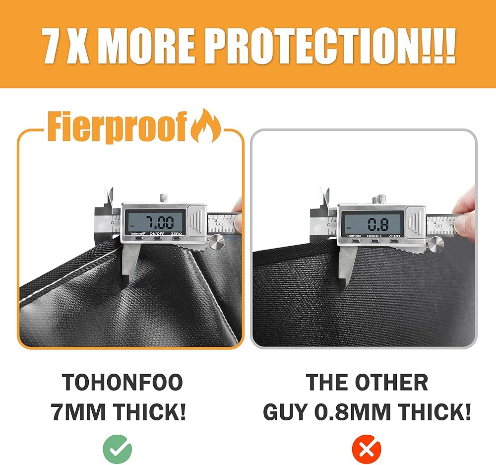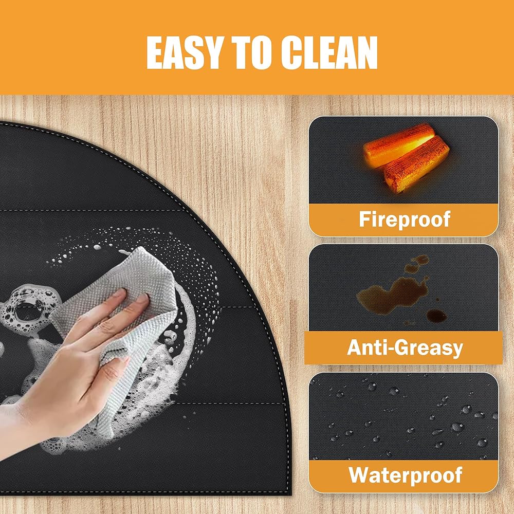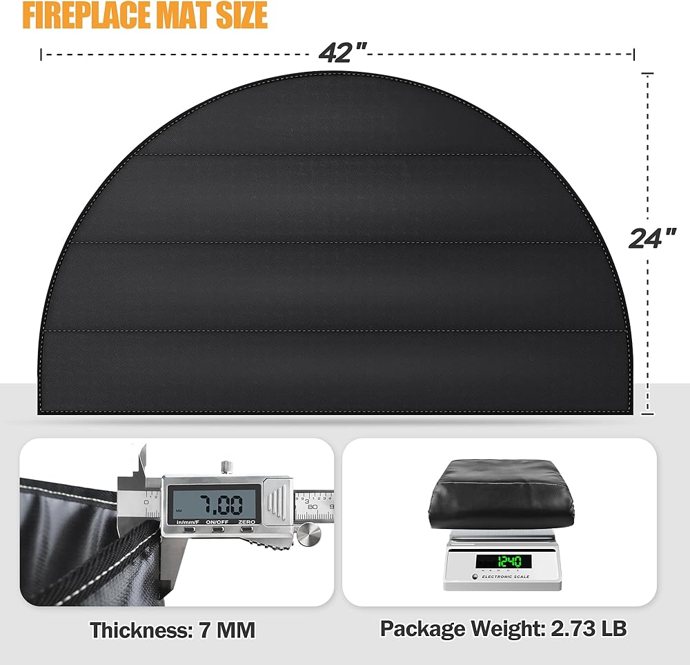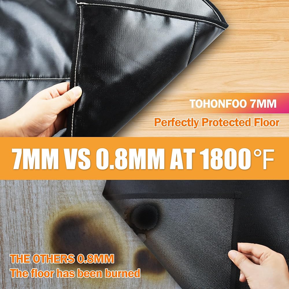 【سجادة مدفأة بسمك 7 مم مطورة】توفر سجادة الموقد المقاومة للحريق بسمك 7 مم سُمكًا أكبر بمقدار 7 أضعاف من السجادة الأخرى بسمك 0.8 مم، مما يوفر حماية أفضل للأرضية والسجاد من رذاذ الفحم عندما يحترق الموقد.
