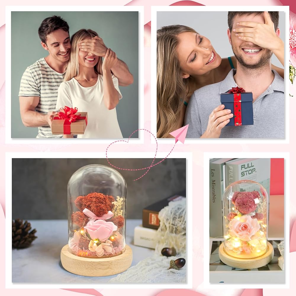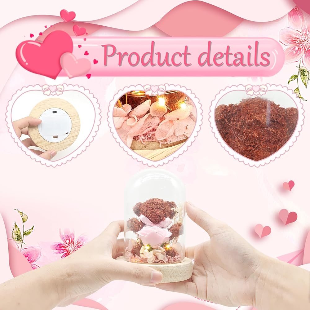 【💝 هدايا عيد الحب بالزهور المحفوظة 💍】هدايا للزوجة مصباح زهور مثالي لعيد الحب، هدايا الذكرى السنوية على شكل قبة زجاجية للنساء، هدية الزهور المحفوظة هي رمز الحب الأبدي. جمالها الخالد يجعلها هدية مثالية لصديقتك أو زوجتك أو والدتك أو أختك أو جدتك. هدايا عيد الحب المحفوظة الوردية الحقيقية هي بديل فريد وصادق للهدايا التقليدية، ترمز إلى حبك الدائم. 🎁