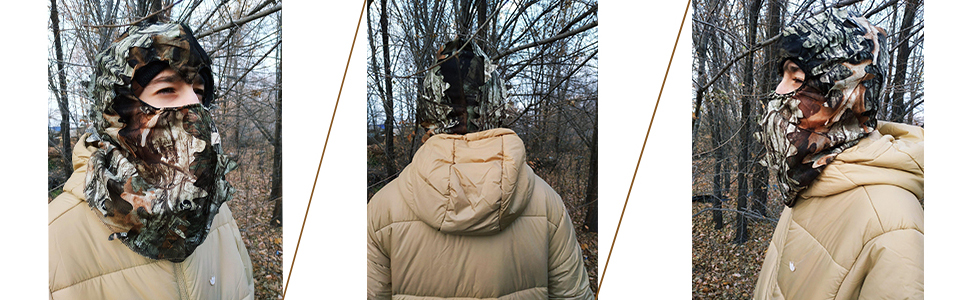 【إخفاء مموه في الهواء الطلق】 - يمنحك مموهًا في الشجرة، مع كشف كمية صغيرة جدًا من وجهك. يمكنك أيضاً إنزال الستارة على الجبهة لتغطي منطقة العينين، وتخفي رأسك تماماً.