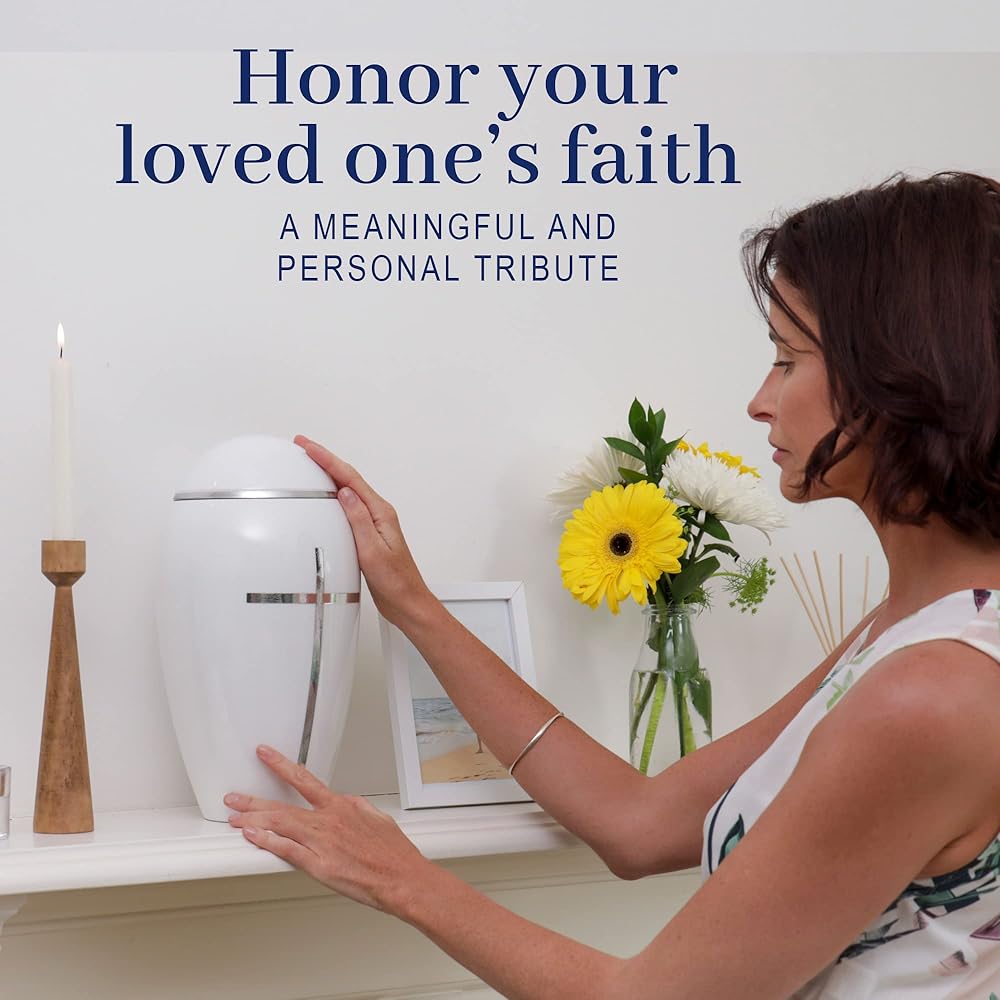 تكريم إيمان من تحب - امنح من تحب إشادة شخصية وذات مغزى. جرة جنازة بسيطة مع صليب بسيط يزين المقدمة تمكن جرة حرق الجثث للرماد من أن تعكس دين أحبائك بينما تظل أنيقة إلى الأبد. على الرغم من أن الإيمان جانب مهم في حياة الكثير من الناس، إلا أنه قد لا يتناسب مع تصميمات الجرار المسيحية المزدحمة والمتقنة التي تصور يسوع والتي يقدمها الكثيرون.