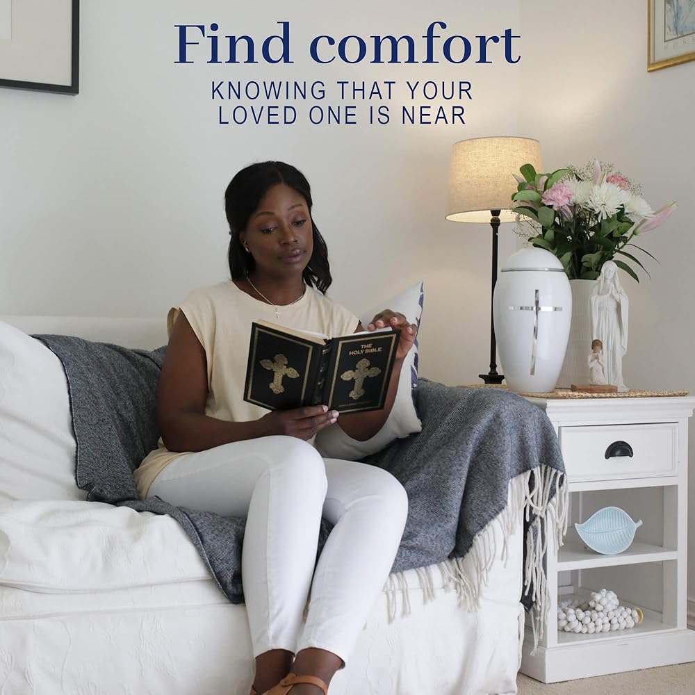 متوفرة بثلاثة أحجام - تتوفر هذه المجموعة من جرار حرق الجثث بثلاثة أحجام وخيارين من الألوان مما يسمح لك بمطابقة الاحتياجات الفردية لعائلتك. جرة بيضاء وفضية نقية أو نقش خشبي مع صليب ذهبي. توجد جرة كبيرة لحمل رماد البالغين، وهي صغيرة لحمل جزء عند مشاركتها مع العائلة أو الأطفال (حتى 75 رطلاً) بقايا حرق الجثث بالإضافة إلى جرة تذكارية صغيرة تسمح لك بالاحتفاظ برمز صغير من رماد أحبائك. .