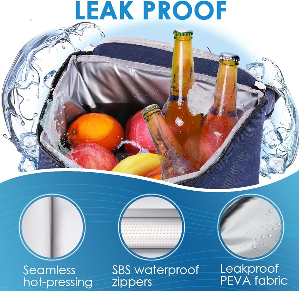 【Leakproof】We've upgraded the process to ensure the utmost durability and leak proof design of cooler backpack. Our moisture-proof and leakproof PEVA fabric, combined with seamless hot-pressing technology and high-quality SBS waterproof zippers, prevents any possible leakage. You can put ice cubes or cold drinks inside the insulated backpack without worrying about wetting your clothes or car.
