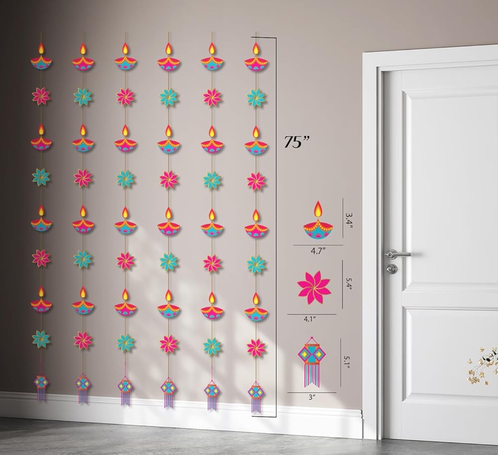 💫 حرفية ممتازة: مصنوعة من ورق عالي الجودة، هذه الديكورات مذهلة ومتينة بصريًا، مما يضمن أنها تدوم للعديد من احتفالات ديوالي.