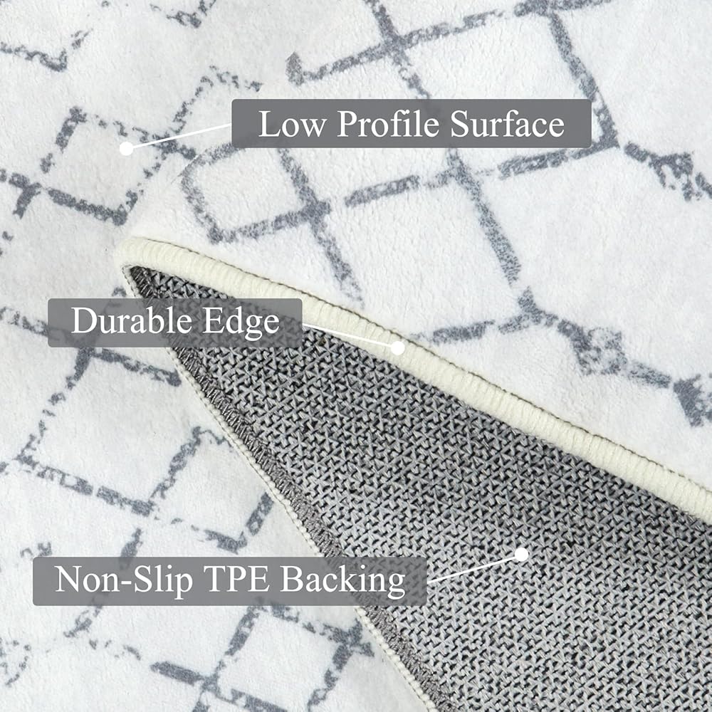 • 【Non Slip & Low-Pile Rug】The non-skid bottom provides a secure grip, preventing slips and falls for both children and elderly family members. The low-pile construction ensures a pet-friendly environment, as it avoids snagging or catching paws on edges. Perfect for daily indoor use in busy areas, this rug blends functionality with style.