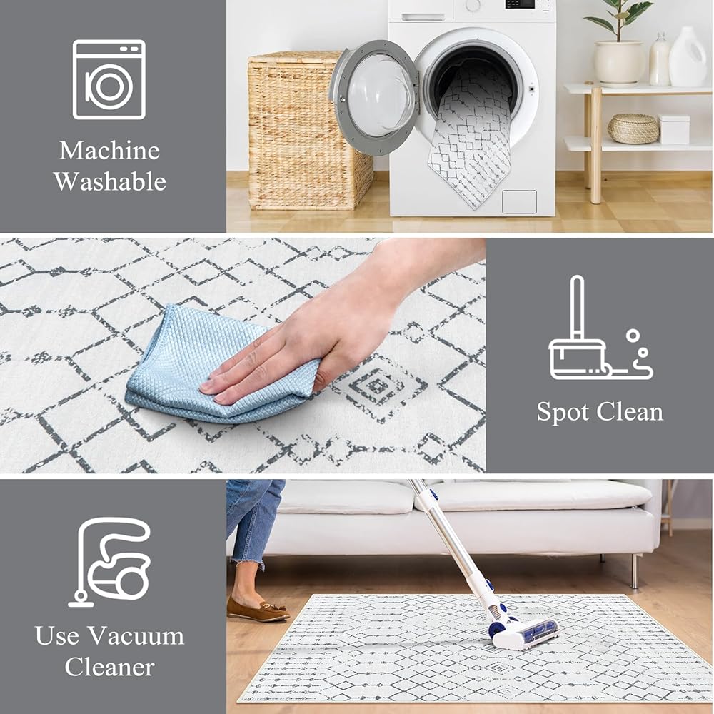 • 【Machine Washable Rug】Designed for easy care, our moroccan rug saves you valuable time with hassle-free cleaning. Regular vacuuming efficiently removes dust and hair, while gentle spot cleaning tackles stains, keeping your rug in pristine condition. Incorporate regular maintenance into your routine to ensure your carpet remains shiny and spotless.