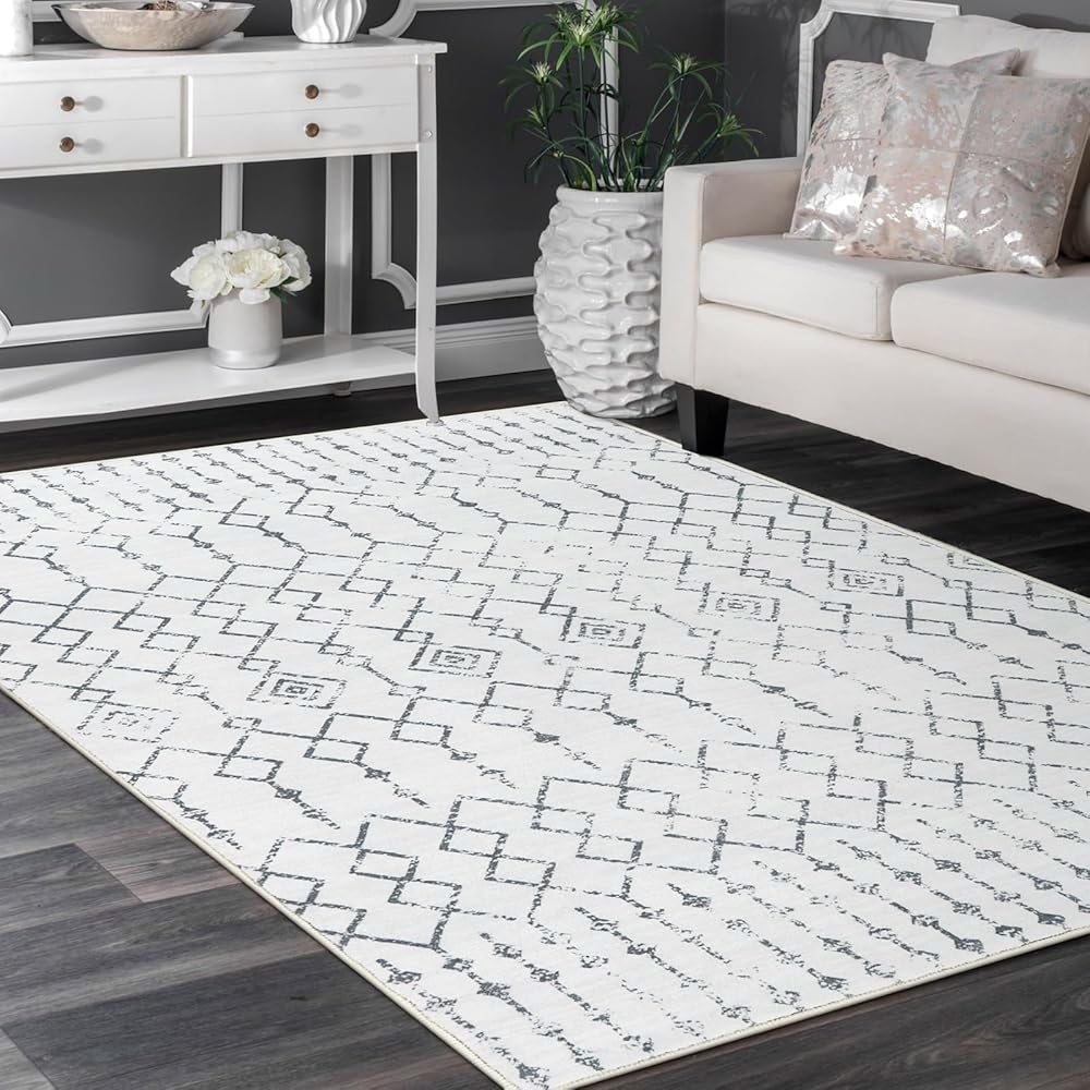 Anidaroel مغربية سجادة منطقة قابلة للغسل ، 5 × 7 رمادي كبير غرفة المعيشة السجاد سجاد ناعم لغرفة النوم ، غرفة الطعام منخفضة السجادة غير المقطوعة للزلي