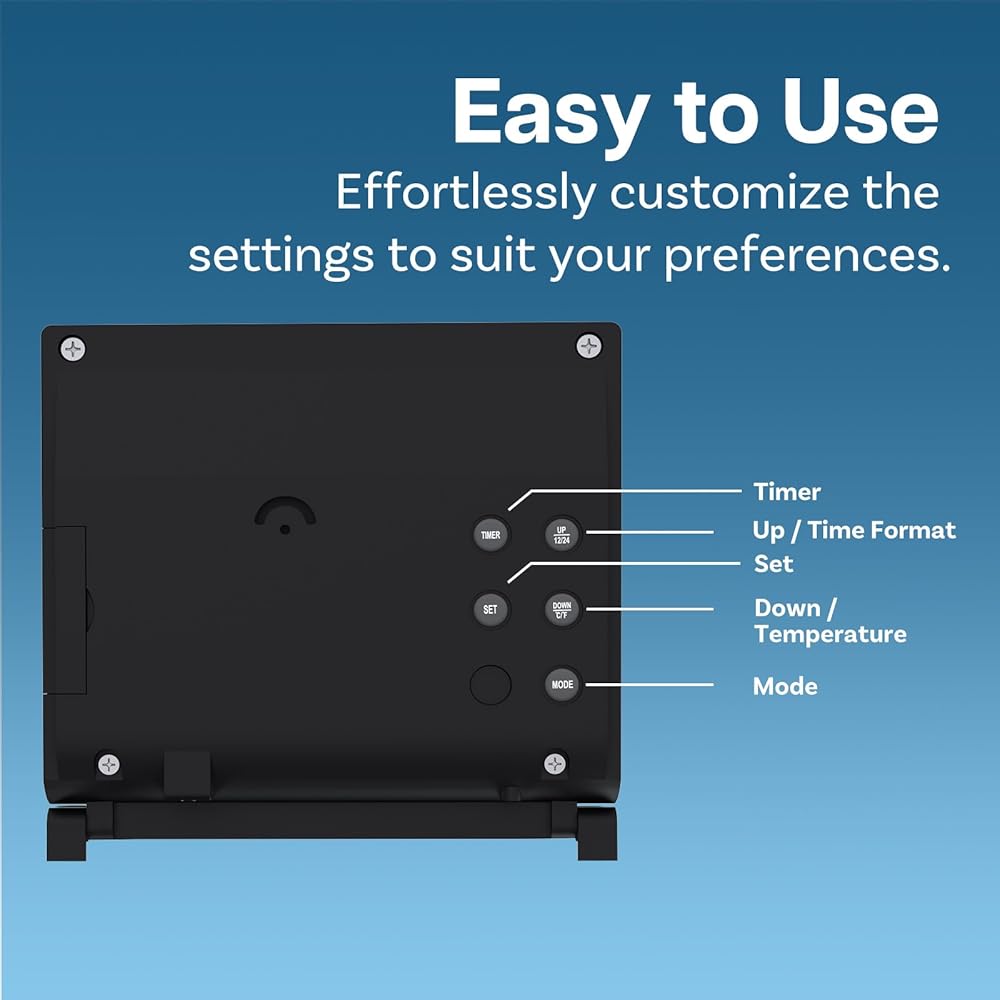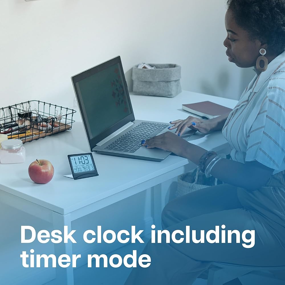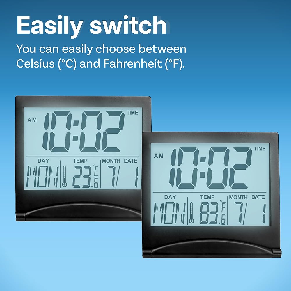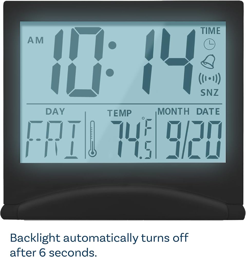 Besides displaying the time, date, day of the week and temperature, this compact desk top clock has many other handy features:
