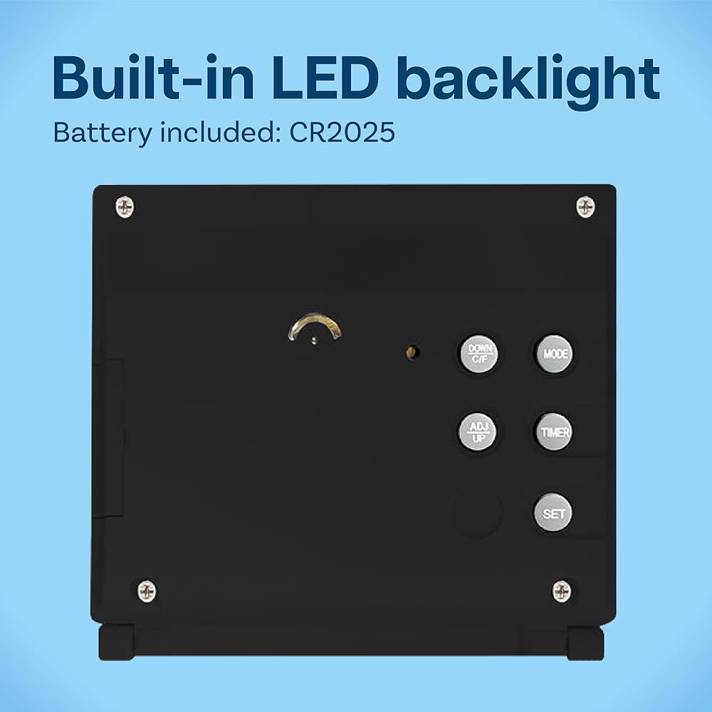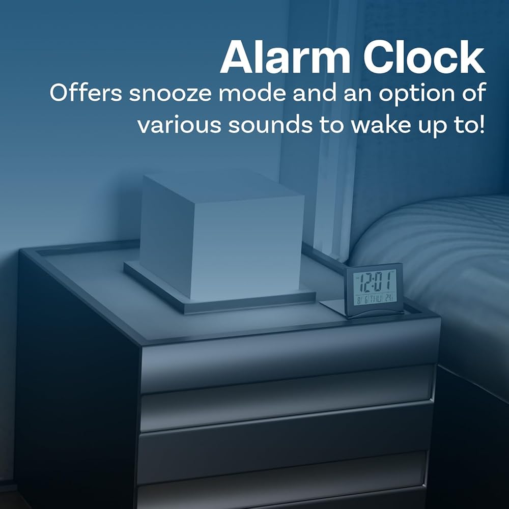 The small digital clock includes an alarm clock function and CR2032 lithium battery. Via the buttons on the back you can choose from 10 different alarm clock sounds, activate the snooze function and set exactly when the alarm clock will go off.