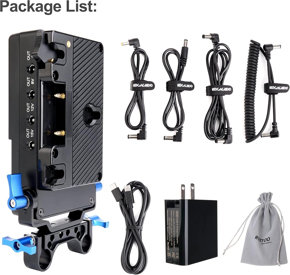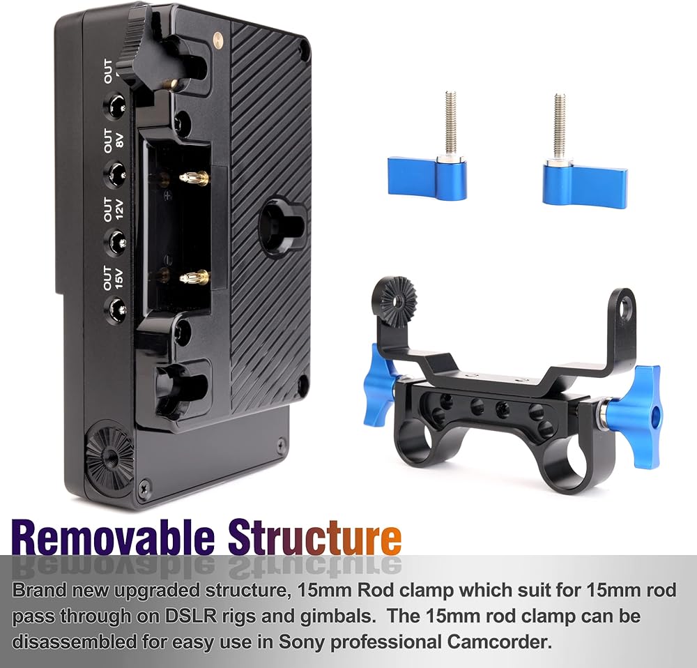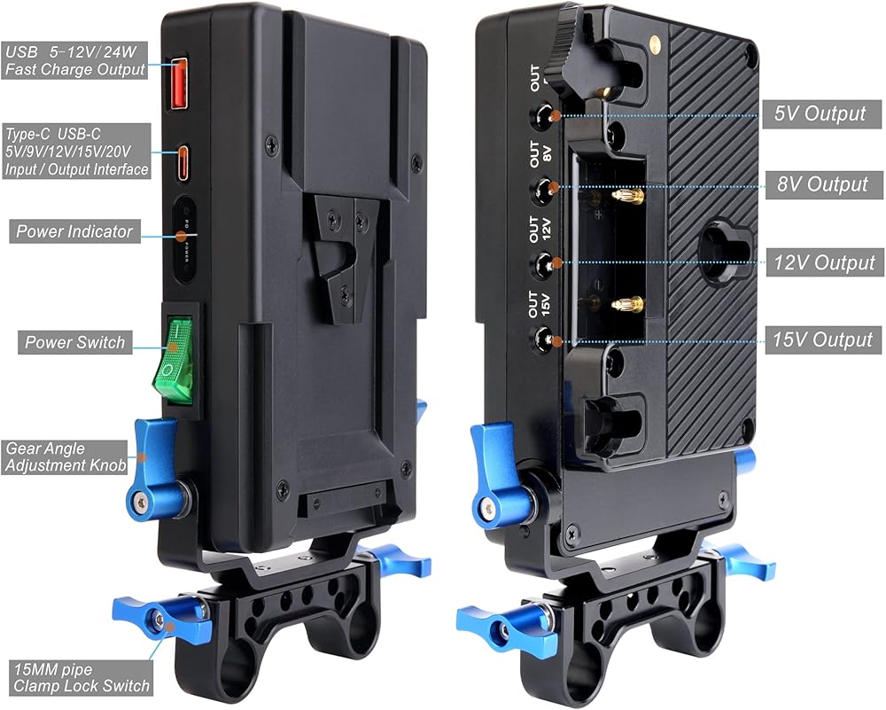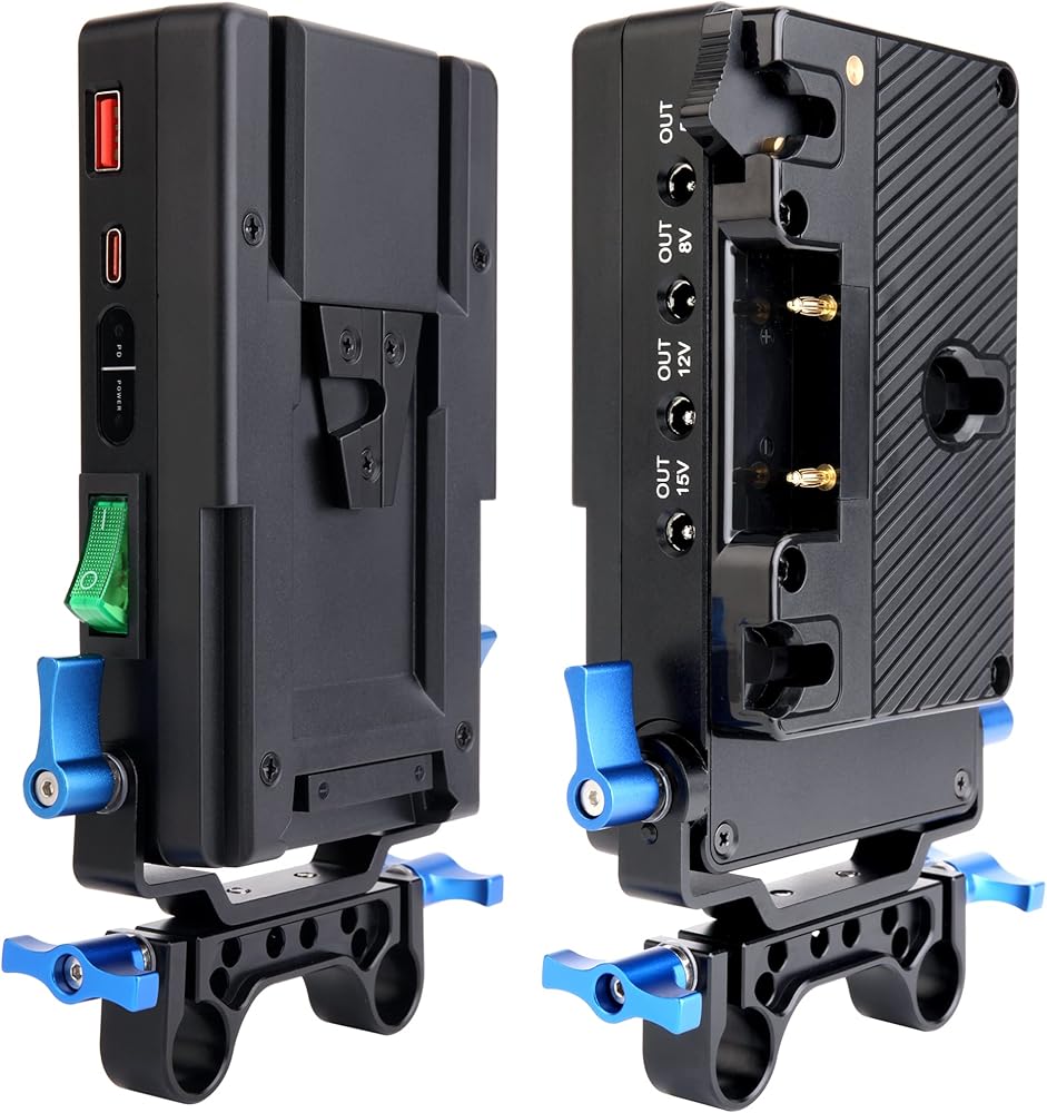 تتحول بطارية أنتو-باور جولد ماونت من كوكاكوو إلى لوحة محول كاميرا الفيديو على شكل حرف V، محول مقسم إمدادات الطاقة. مع مشبك قضيب 15 مم وسبعة مخرج طاقة تيار مستمر لكاميرات سوني وكاميرات دي اس ال ار.