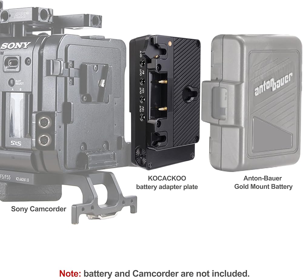 ★ محول بطارية KOCACKOO Anton-Bauer Gold Mount إلى لوحة محول كاميرا الفيديو، بطارية Anton--Bauer Gold Mount على المقدمة، واجهة تركيب على شكل حرف V/قفل V على الظهر، مع خطاف لاصق V-Mount في الجزء الخلفي من كاميرا سوني . يمكن أن توفر الطاقة لكاميرا سوني من خلال بطارية Anton-Bauer Gold Mount.