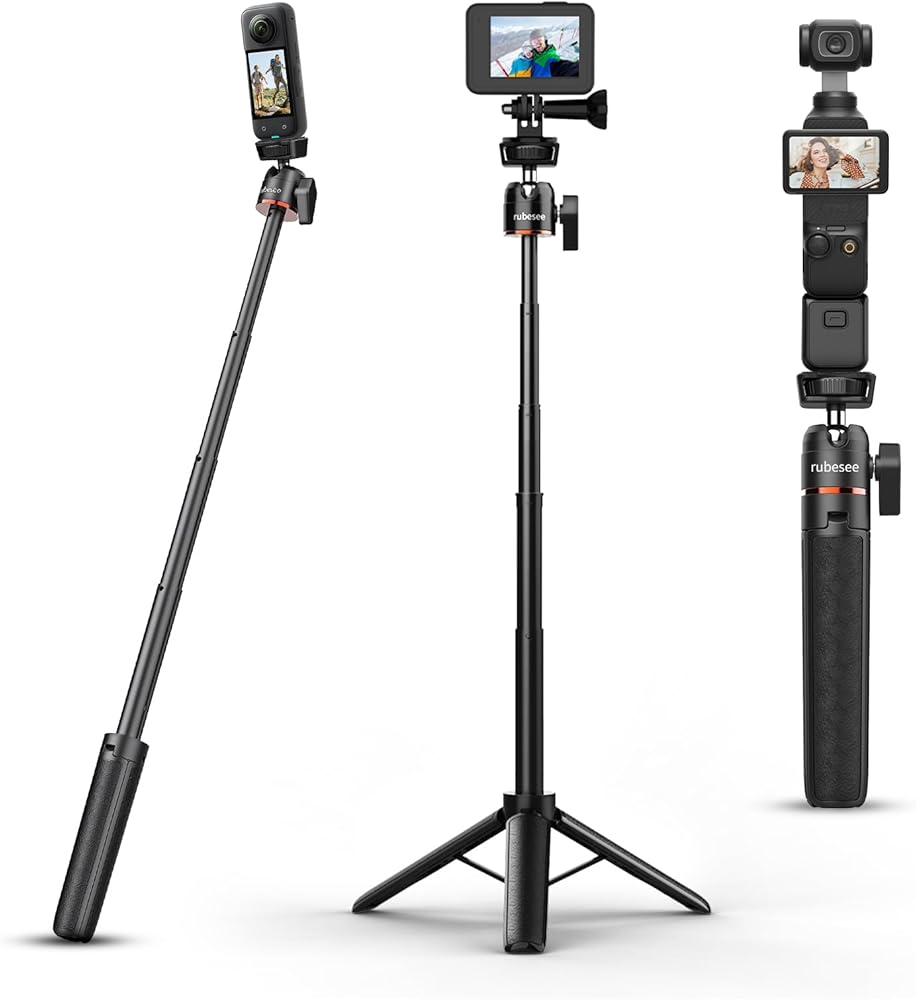 حامل ثلاثي صغير للكاميرا، عصا سيلفي ثلاثية القوائم مقاس 24.61 بوصة/62.5 سم مع 5 مستويات تعديل 360 درجة رأس كروي 1/4 بوصة سطح مكتب لولبي لكاميرا DJI Osmo Pocket3 Vlog مقبض Insta360 Action 5 Pro/4/3