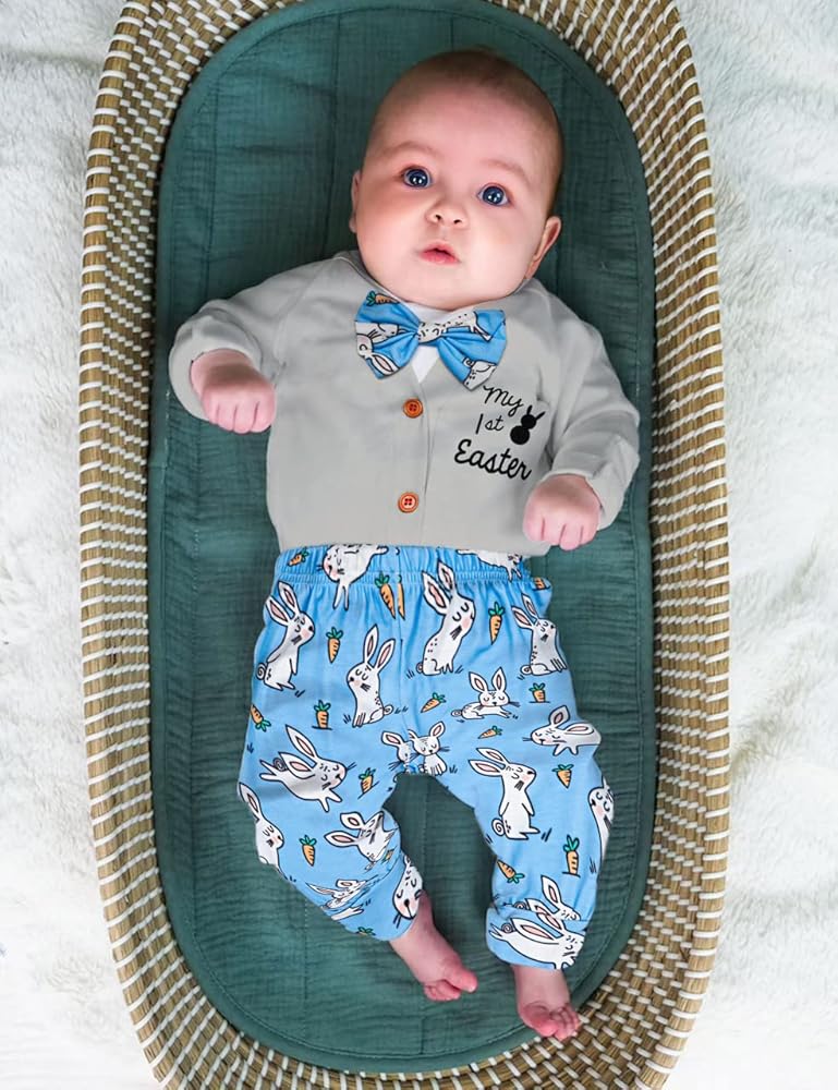 🐇 Easter Baby Boy outfit Shower Gifts - Still worrying about your baby's Easter dress for a beautiful view? My first Easter baby boy outfit makes your baby more stylish, charming, beautiful, and your sweetheart the most elegant and sparkly boy crowd in the world.