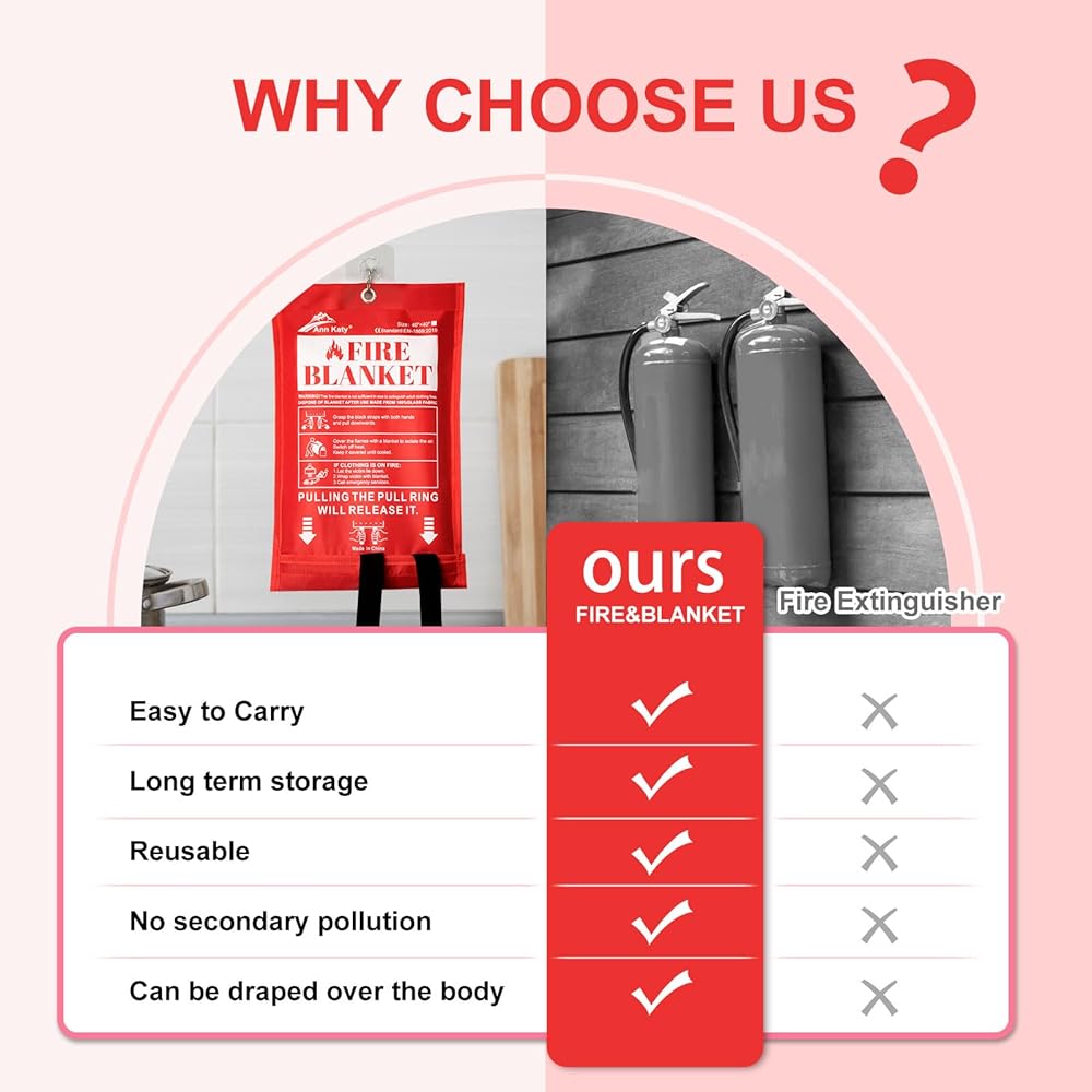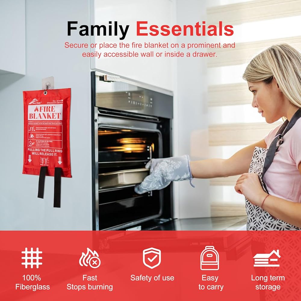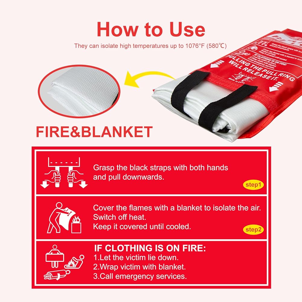 【ماذا يوجد في العبوة】تتضمن كل عبوة خمس بطانيات للسلامة من الحرائق، كاملة مع خطافات للتخزين المريح وقفازات للتعامل الآمن. مجموعة واحدة تلبي جميع احتياجات السلامة من الحرائق لعائلتك.