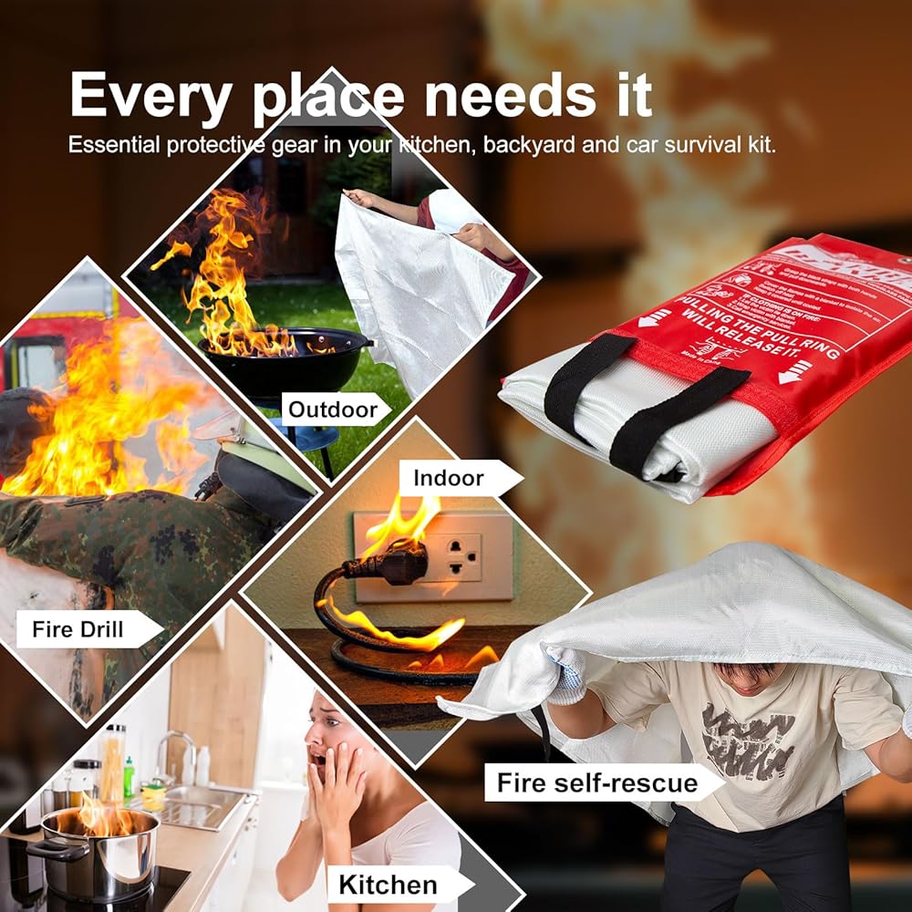 【أمان متعدد الأغراض】سواء كان الموقد في مطبخك، أو الشواء في الفناء الخلفي، أو مدفأة مريحة، أو مغامرة تخييم، فإن بطانية السلامة من الحرائق الخاصة بنا تعمل بمثابة حامي موثوق به. وفي أوقات الطوارئ، يمكن أيضًا ارتداؤه كدرع للإخلاء الآمن.