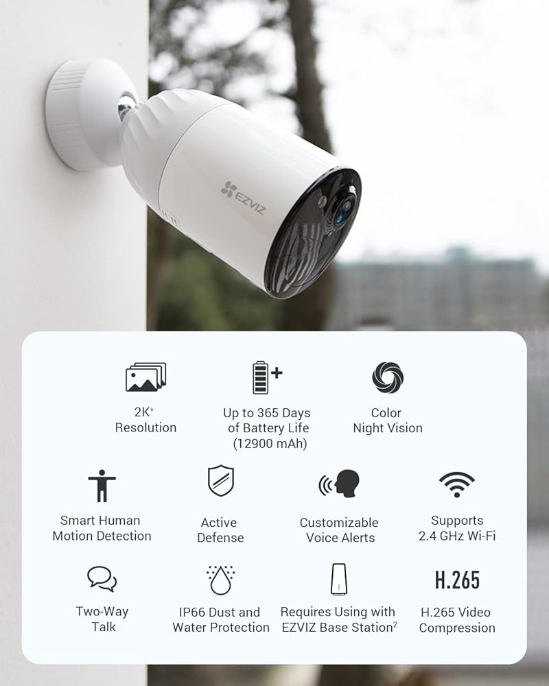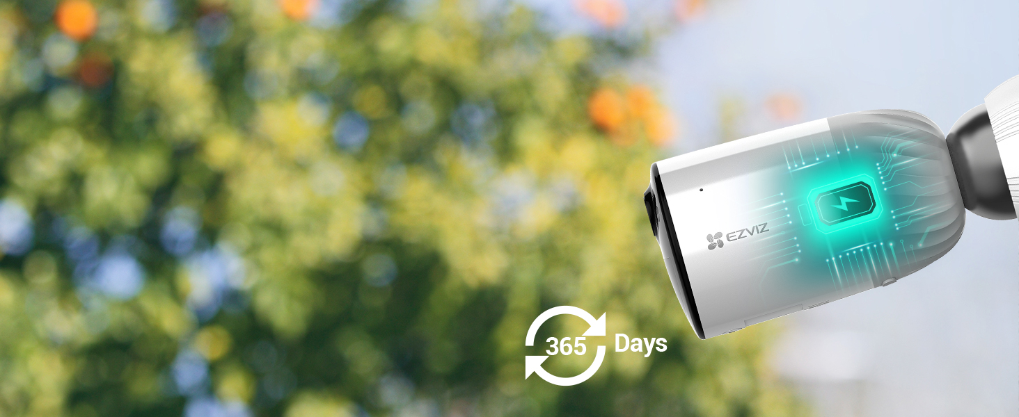 أمان يصل إلى 365 يومًا من شحن واحد وطاقة شمسية بدون توقف - مزود ببطارية ضخمة قابلة لإعادة الشحن، يمكن أن يستمر BC1 لمدة تصل إلى عام عند شحن البطارية بالكامل. يمكنك أيضًا توصيل كاميرات BC1 بلوحة EZVIZ الشمسية للحصول على مصدر طاقة مستمر.