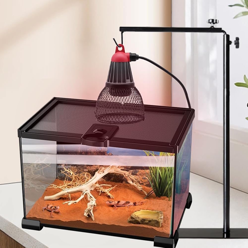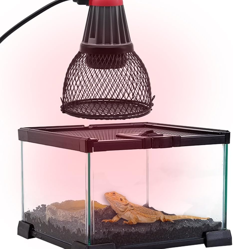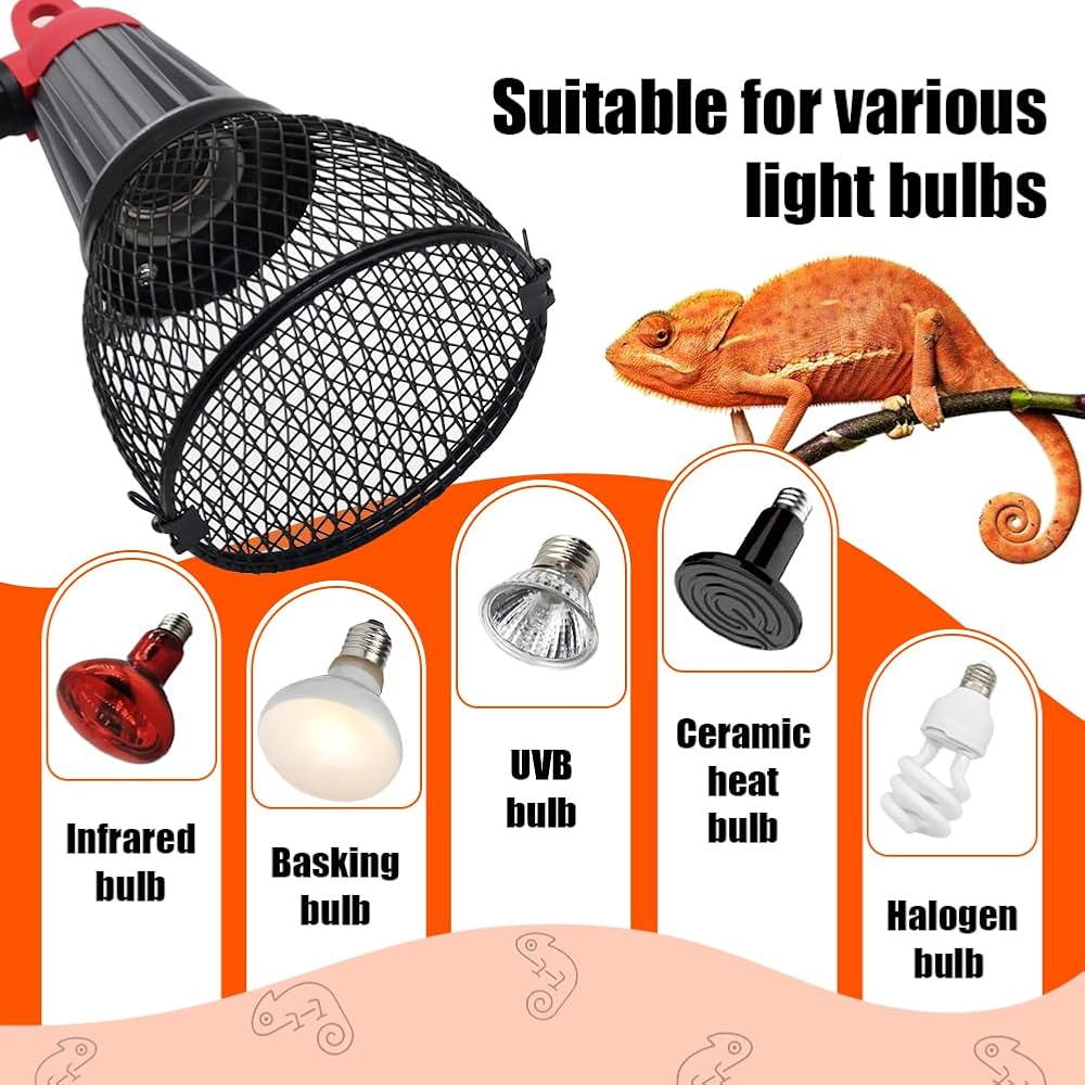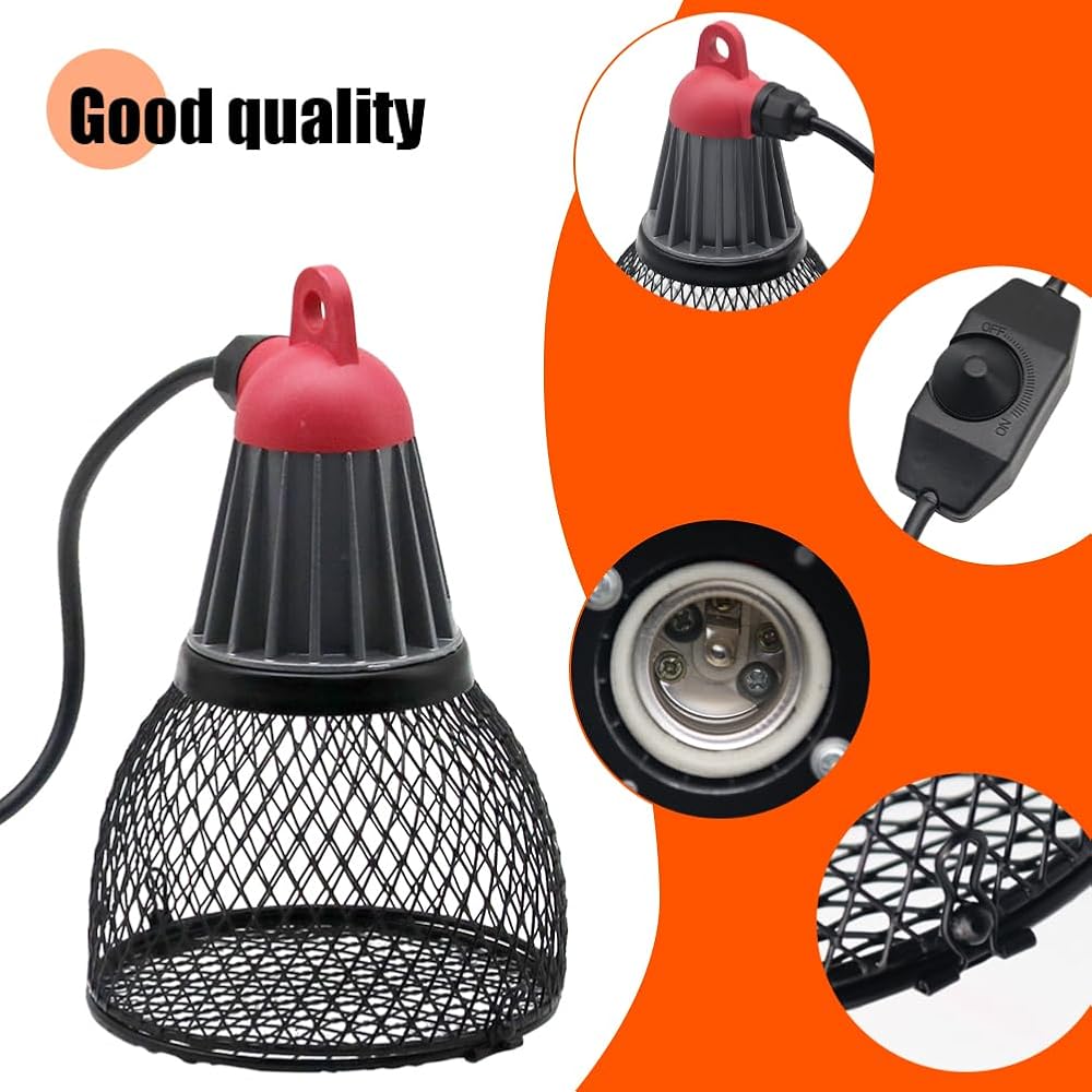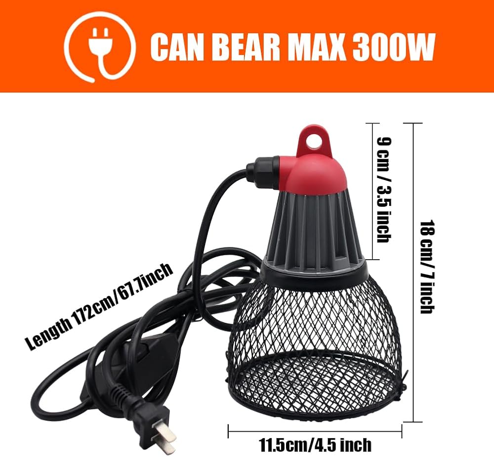 1.Solid Ceramic Components---Reptile Heat Lamp is Made of Solid Ceramic Components & is Suitable for Various Wet Ecological Environments,easy to Install, Rated for Up to 10, 000 Hours.cold Season is Approaching, the Outdoor Temperature Lowering Heating Lamp is Suitable for Various Seasons & Various Animals. 2.Fast Heating and High Efficiency---The heating lights will make heat higher generally within 30 seconds, and it keeps a constant temperature when reaching at certain power. It offers continuous heating of 20,000 hours. With switch, easy to control the heating lamp. 3.MATERIAL---Stainless steel net with painted surface is safe for pets, elastic and durable, and is a good heat conducting material.Different bulbs below 200 watts can be freely installed at the bottom of the lamp, and a certain distance between the bulb and the mesh can be used to dissipate heat, so as to prevent the barbed wire from overheating and hurting the fragile skin of pets. 4.MULTI-PURPOSE DESIGN---There are two small holes on it, so that the lampshade can be hung on the aquarium or reptile terrarium. There is a simple lock on the bottom, which can prevent pets from opening during use.It only needs to be opened when installing and replacing the bulb.The wire length is 1.5 meters. 5.Suitable for green iguanas, Beared dragon, turtles, geckos, chameleons, insects and other reptiles;turtles, frogs, birds and other tropical animals.Its switch is a button, when using please pay attention to the safety of electricity. If you have any questions, please contact us and we will reply you within 24 hours.