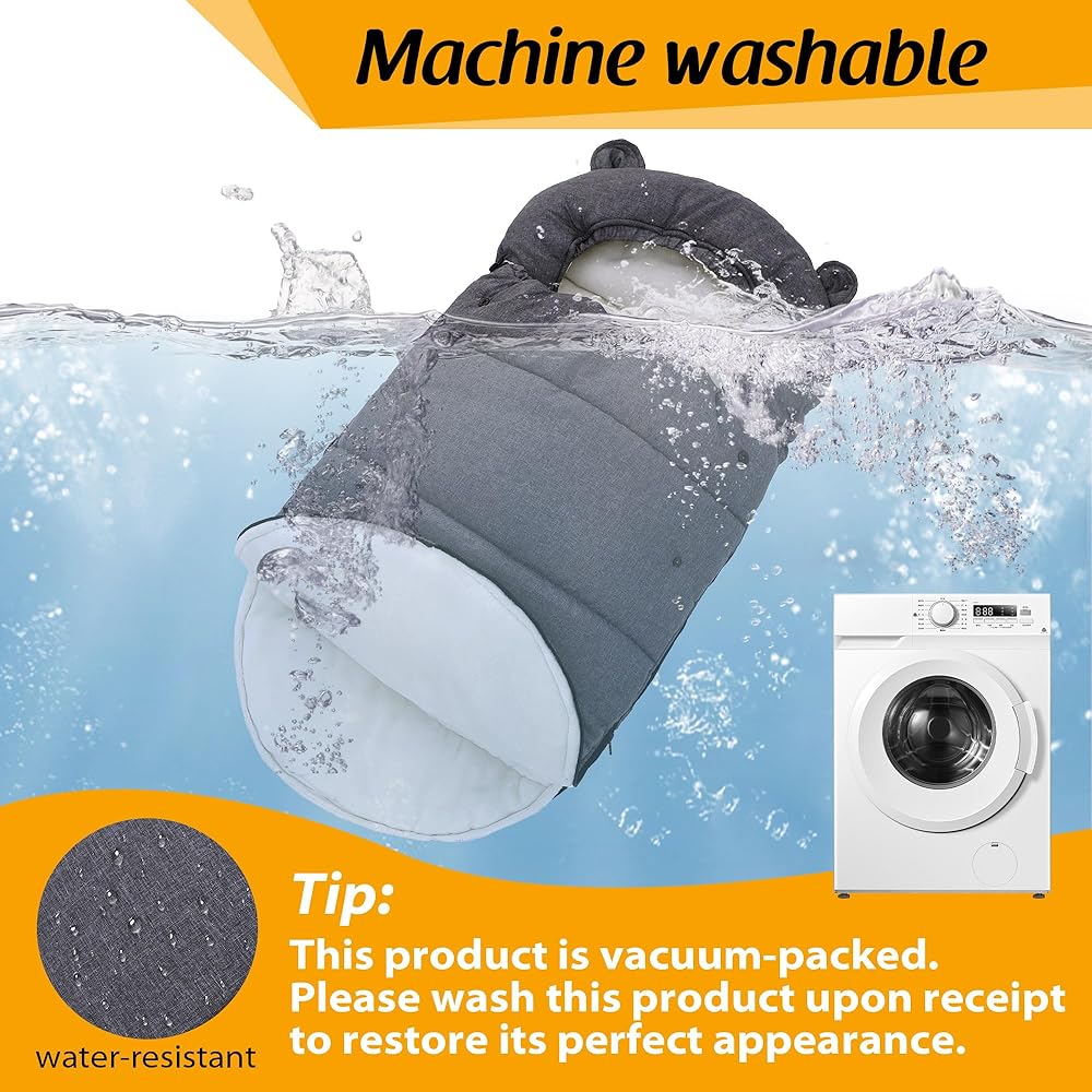 مقاومة للماء وقابلة للغسل في الغسالة: الطبقة الخارجية مصنوعة من نسيج سميك مقاوم للماء، والذي يمكنه حماية الطفل بشكل أفضل في المطر والثلج. ويمكن غسل غطاء عربة الأطفال للطفل في الغسالة عند درجة حرارة 30 درجة مئوية، مما يقلل من الأعباء غير الضرورية على الآباء.