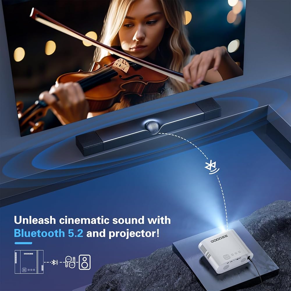 جهاز عرض فيديو جودي G500 6000L و1080P و200 بوصة يدعم جهاز عرض الأفلام المحمول مع عمر مصباح 50000 ساعة، جهاز عرض مسرح منزلي متوافق مع تي في ستيك وHDMI والجوال