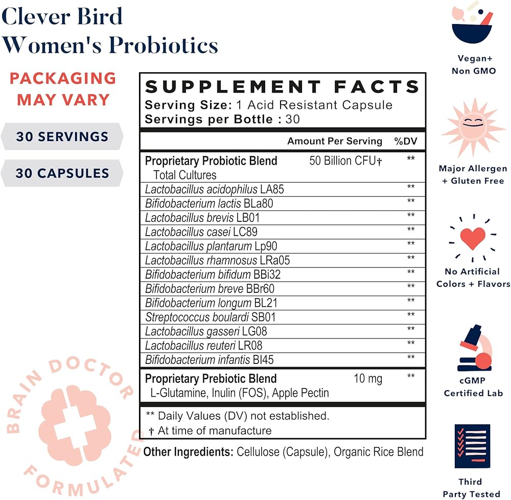 تعزيز الدماغ، التغذية المدعومة بالعلم: أكثر من 50 مليار وحدة CFU قوية مع فوائد متعددة السلالات لـ 13 سلالة بروبيوتيك مختلفة تم اختيارها خصيصًا لصحة المرأة لاستعادة التوازن. يدعم العناية بأمعائك - "الدماغ الثاني" - من خلال تعزيز عملية الهضم بشكل أفضل وانتظام صحي. تساعد البروبيوتيك الخاصة بالنساء على تعزيز المناعة وتساعد على إنتاج الناقل العصبي السيروتونين الذي يشعرك بالسعادة.