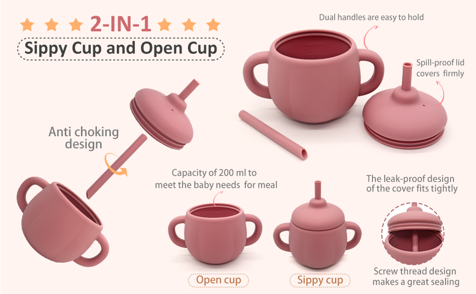 【كوب انتقالي 2 في 1】تم تصميم كوب الأطفال الصغار الخاص بنا ليناسب فم الطفل وأيديه الصغيرة. تصميم فريد من نوعه من المصاصة والغطاء يضمن أن الأطفال يمكنهم امتصاص المصاصة بسهولة دون تسريب، ويمكن استخدام كوب تدريب الأطفال المزود بغطاء وماصة ككوب بماصة وكوب مضاد للانسكاب وكوب مفتوح في نفس الوقت، وهو مثالي لجميع المناسبات!