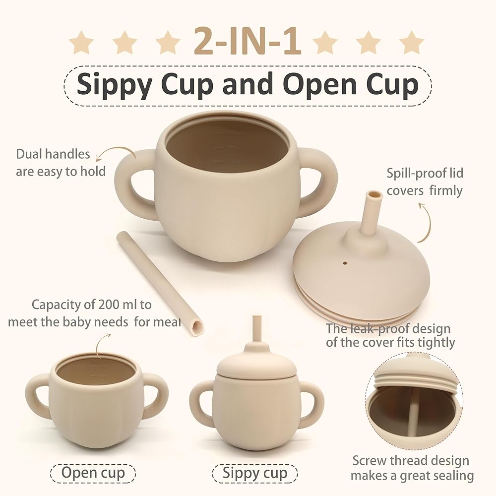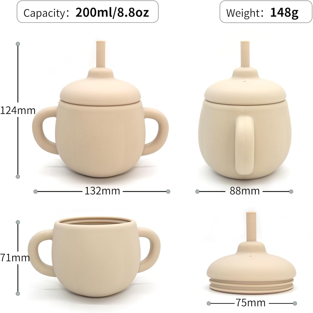 【سهلة الحمل】خفيفة الوزن، ما عليك سوى وضع مجموعة التغذية في حقيبتك. كوب مضاد للانزلاق للأطفال بوزن 148 جرام مع مقبضين غير قابلين للانزلاق، تدريب الإمساك بشكل فعال على عضلات يد الطفل وتنسيق الدماغ.